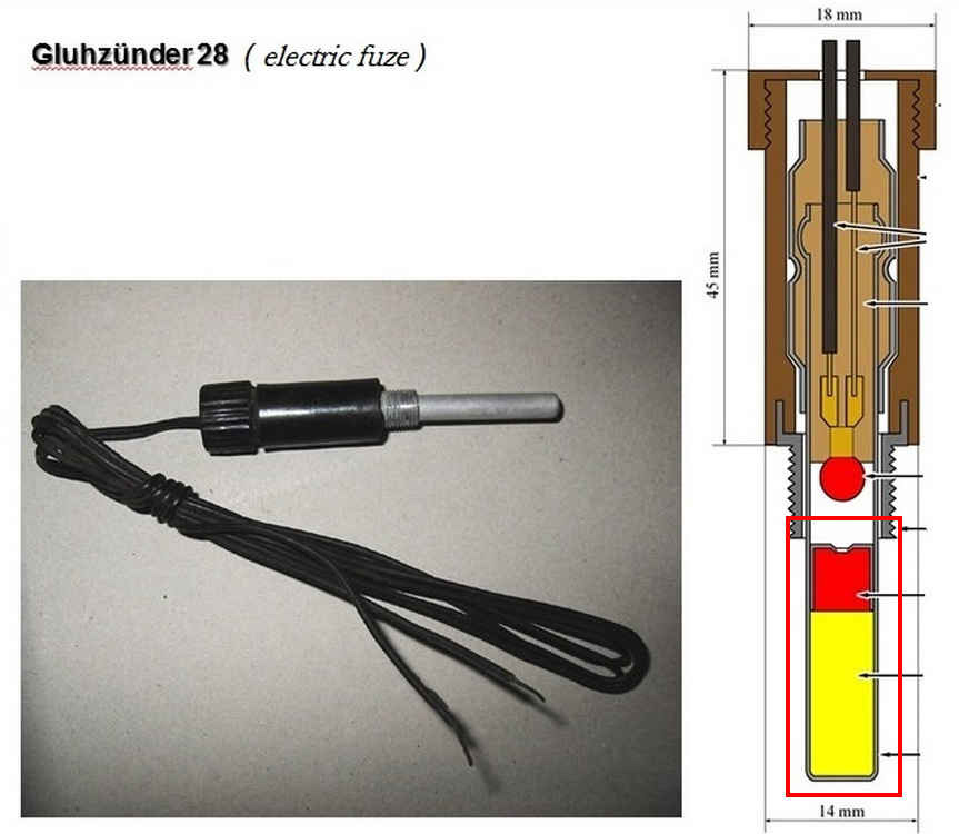 Да! Электродетонатор. Немецкий. НАИБОЛЕЕ ОПАСНАЯ часть ЭД на рисунке обозначена красным прямоугольником. НЕ ПОДСОЕДИНЯТЬ К ПРОВОДАМ ИСТОЧНИК ТОКА, НЕ НАГРЕВАТЬ ОГНЁМ, НЕ ПОДВЕРГАТЬ МЕХАНИЧЕСКОМУ ВОЗДЕЙСТВИЮ (удар, сдавливание, распиливание и т.п.), СРОЧНО ВЫНЕСТИ ИЗ ЖИЛИЩА (срок в уголовном кодексе за хранение)