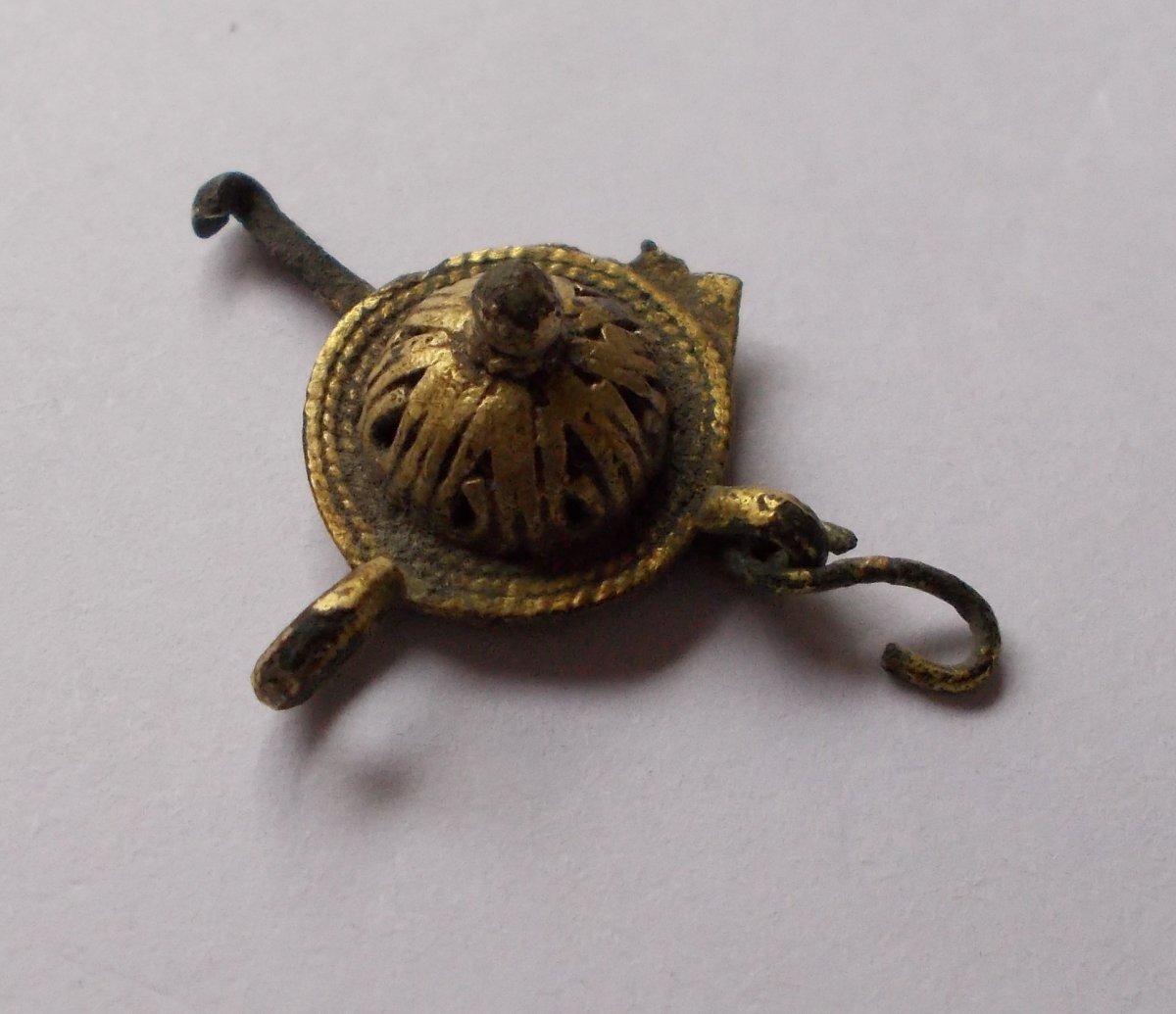 Здравствуйте. Прошу помочь с определением предмета , у соседей подсказали - "поздняя штуковина времен польско-казацко-татарской войны (1666—1671)". Хотелось бы узнать про нее побольше. Металл - медный сплав в позолоте , регион находки - Нововолынск.