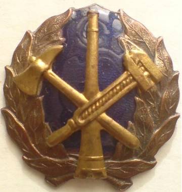 Радянський знак на головний убір частин професійної пожежної охорони, післявійна, ймовірно, 50-ті -60-ті рр. Часто за місцем виготовлення ідентифікують як "Прибалтика", бо гаряча емаль. Носили приблизно так: