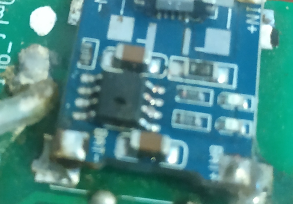 В вбудованій біля акумів зарядці міікруха з диркою, я її одразу викинув, бо акуми нерівномірно заряджені були, два по 3,6в і один 1,6в, і надаю перевагу чистому живленню без проміжних ланок. Це вирішив передивитись плати більш уважно.