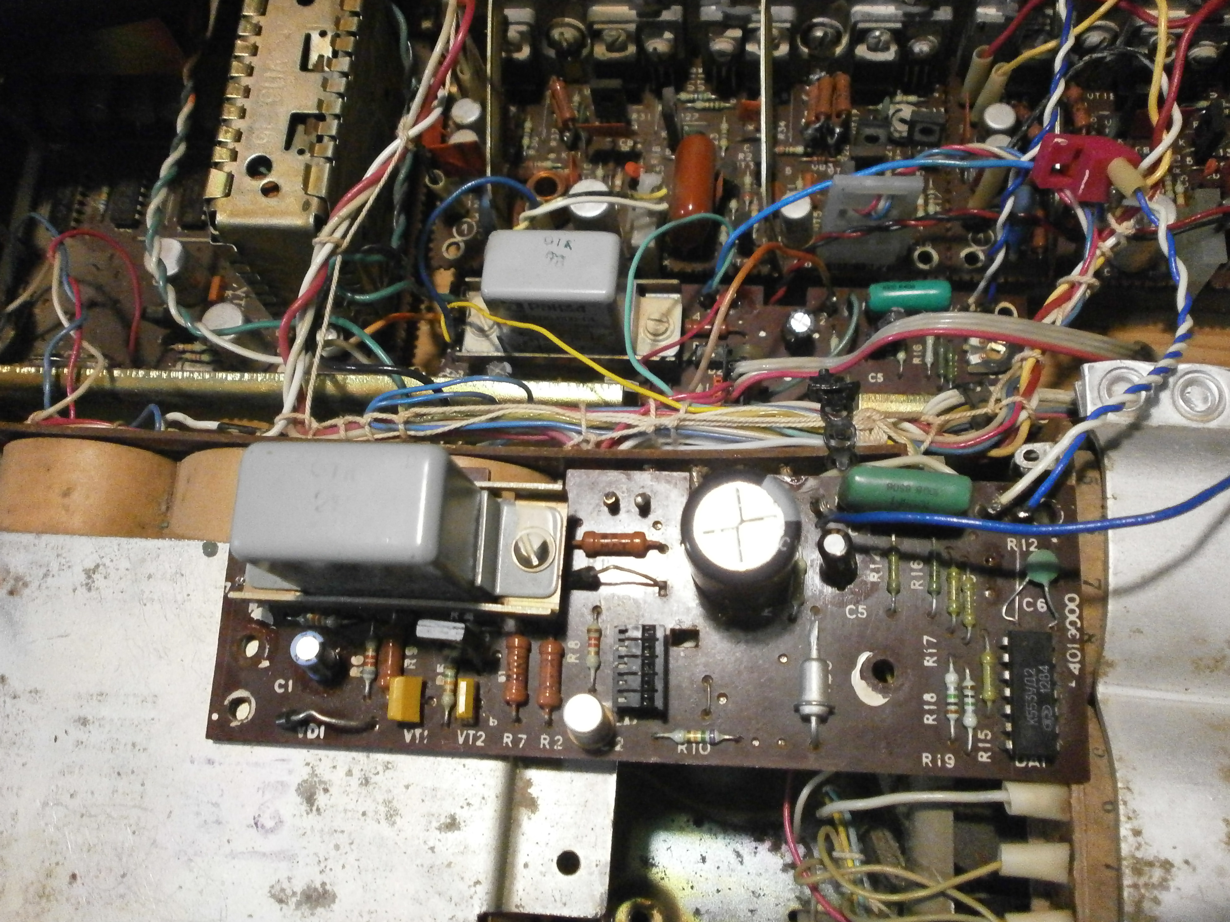 Кондесаторы СССР электролиты, позднего выпуска- выкинуть нафиг, заменить на нормальные. То "говно" в телевизорах лет за 5-7 умирало. Защита АС при включении с задержкой, задержка была за счет заряда конденсатора при включении до нужного напряжения. После чего реле подключало колонки.