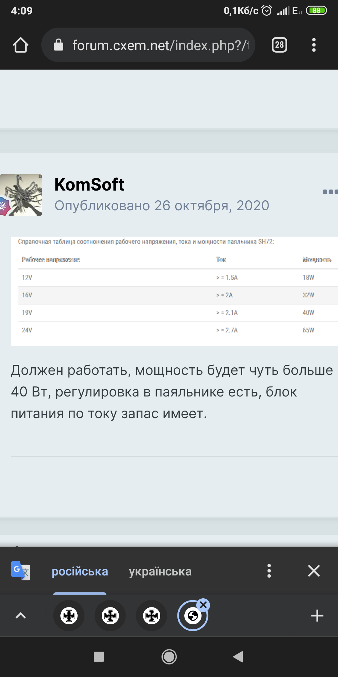 Потужність від характеристик блока залежатиме, я купив максималку 24в, 5а(китайських) , надіюсь що реальних 3а буде, а для паяли 2,7а = 65Вт Screenshot_2024-01-02-04-09-32-230_com.android.chrome.png