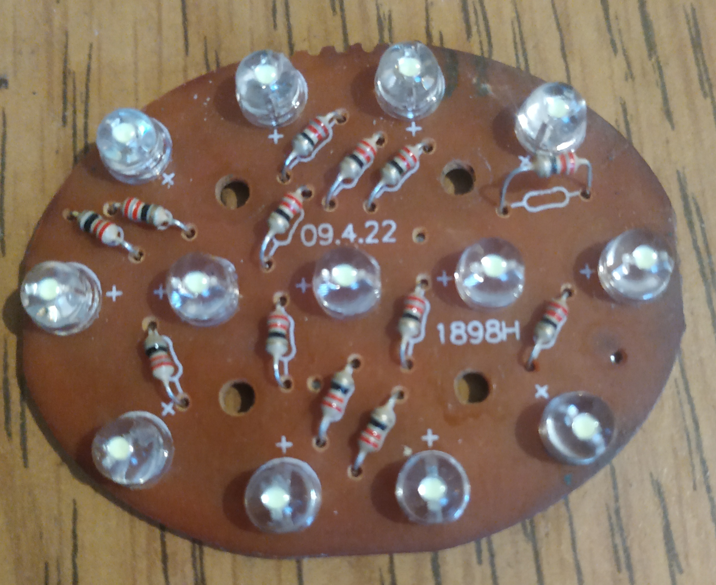 Найшов пошмалену платку з налобника, лак аж чорний, але діоди як не дивно наче живі. Хто шаре, вони на 3в, 20ма?? Живився фонарик від 3аа батарейок, 4,5в виходило. В моєму випадку оптимальний варіант виходить, це порізати доріжки, випаяти спротив , з'єднати послідовно -8 діодів і буде гут?