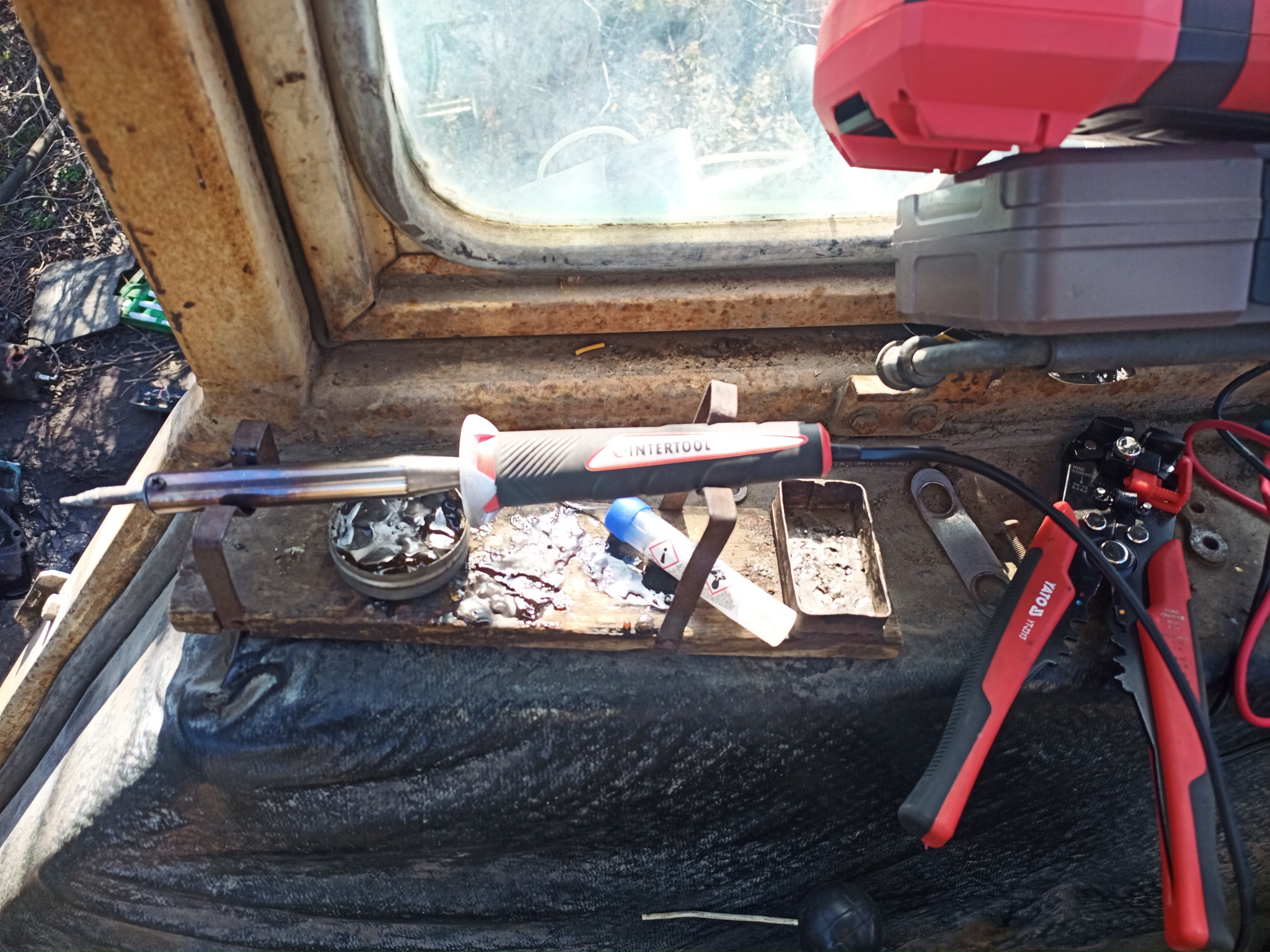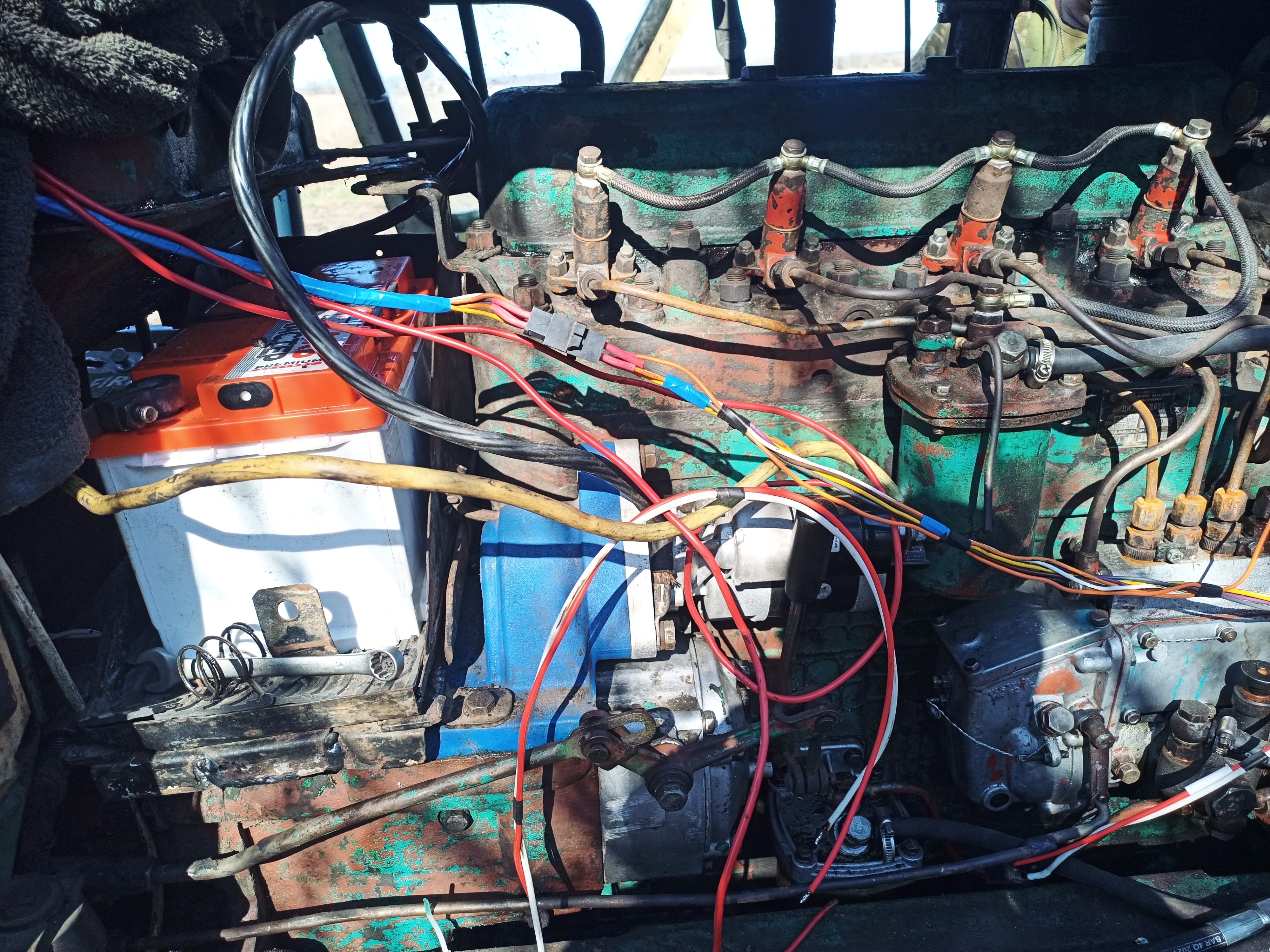Запустив через реле , лампочка працює . Алгоритм наступний - вмикаємо заж. , лампа горить , запуск- гасне , але якщо заглушити не вимикая заж. лампа не загоряється . Тре вимкнуть і знов включить заж. Тре діод між РР та реле на лампу шоб працювало штатно . Не встиг бо дощік заморосцив . Напруга стабільна 14.1 V. Як для холостих трахтора то рахую норм . Лєди з резюком не запрацювали . Припаяв лампочки 24 в. з габаритів - блимають штатно . Отак з гівна і палок та видраної з мертвого камаза проводки каніфоль та олово заселили чарівні вольти у бездушного , ще вчора) копарика . Напаявся .