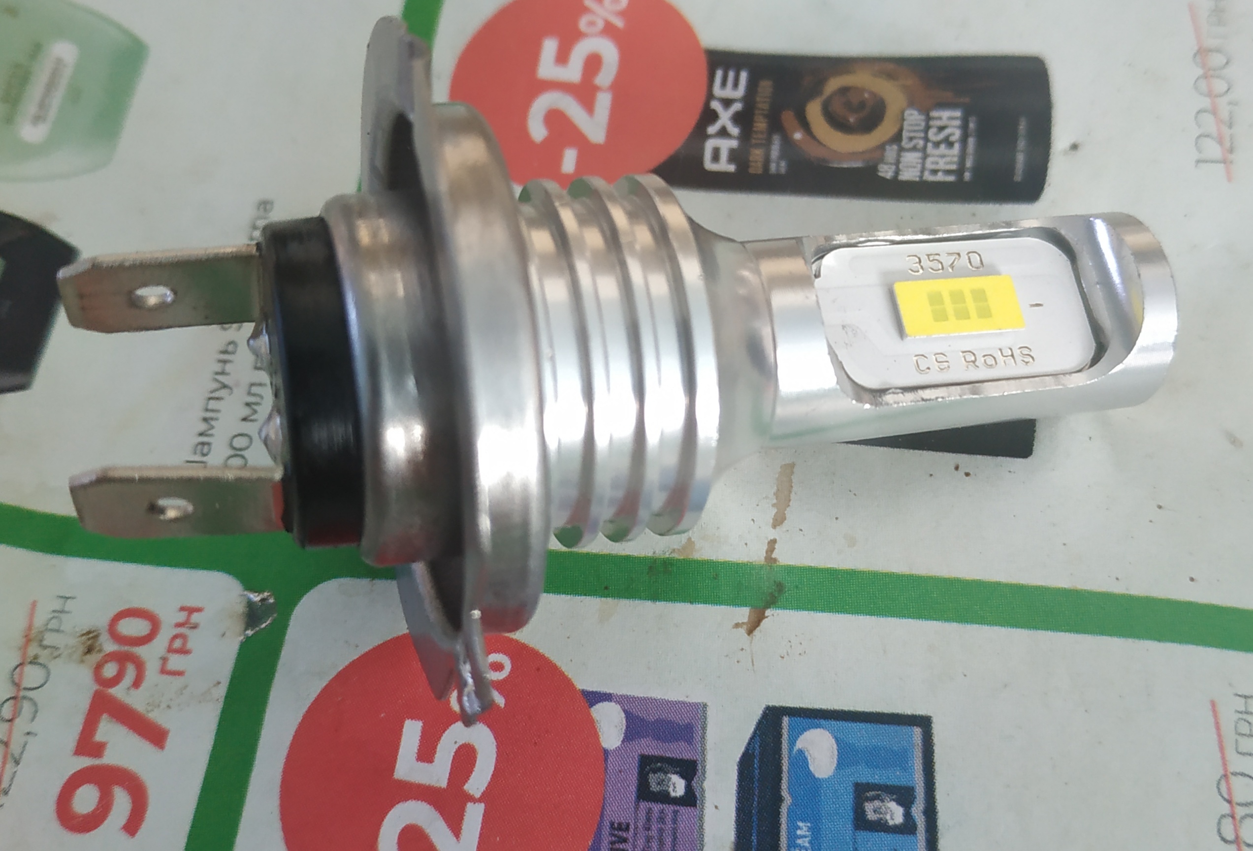 звичайно Н4 для ближнього і дальнього, дві нитки або діода, Н7 одна нитка, найчастіше це ближній, в іншій фарі Н1 на дальній. Сучасна номенклатура автоламп приблизно 50 варіантів, не рахуючи діодних і ще всяких різних, до матричних включно, з ціною від 2 грн і до 5 тис. баксів. Найпростіші діодні таки мають полярність, типу не світить переверни в цоколі, нормальні мають обманку контроллера справності і температуру світла меньше 6000. З свого досвіду найприємніші 4500-5000, для протитуманок 2500-3000, жовтіші.