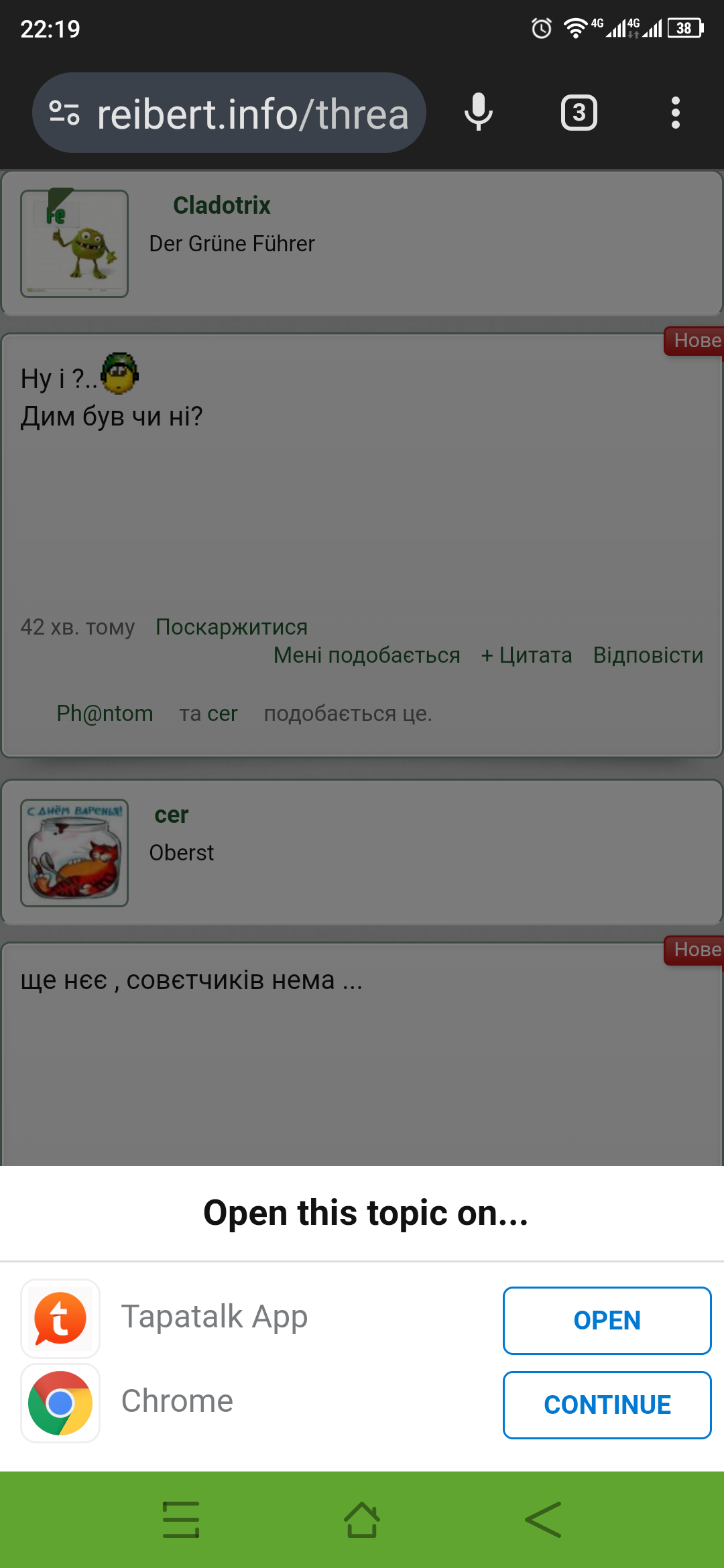 Нажміть Continue біля браузера, перестане задовбувати. Тимчасово... Потім знов може Tapatalk вилізти в пропозицію.. Вже декілька разів було..