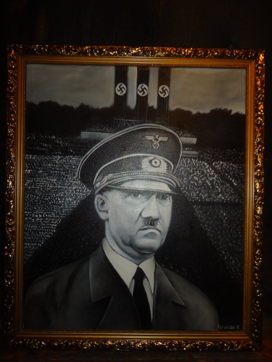 Подскажите кто разбирается в картинах. Сколько может стоить портрет фюрера . Размер с рамкой 57 на 67. Сам рисунок 50 на 60 см. Картина нарисована на холсте маслом. Совершенно новая. Спасибо.