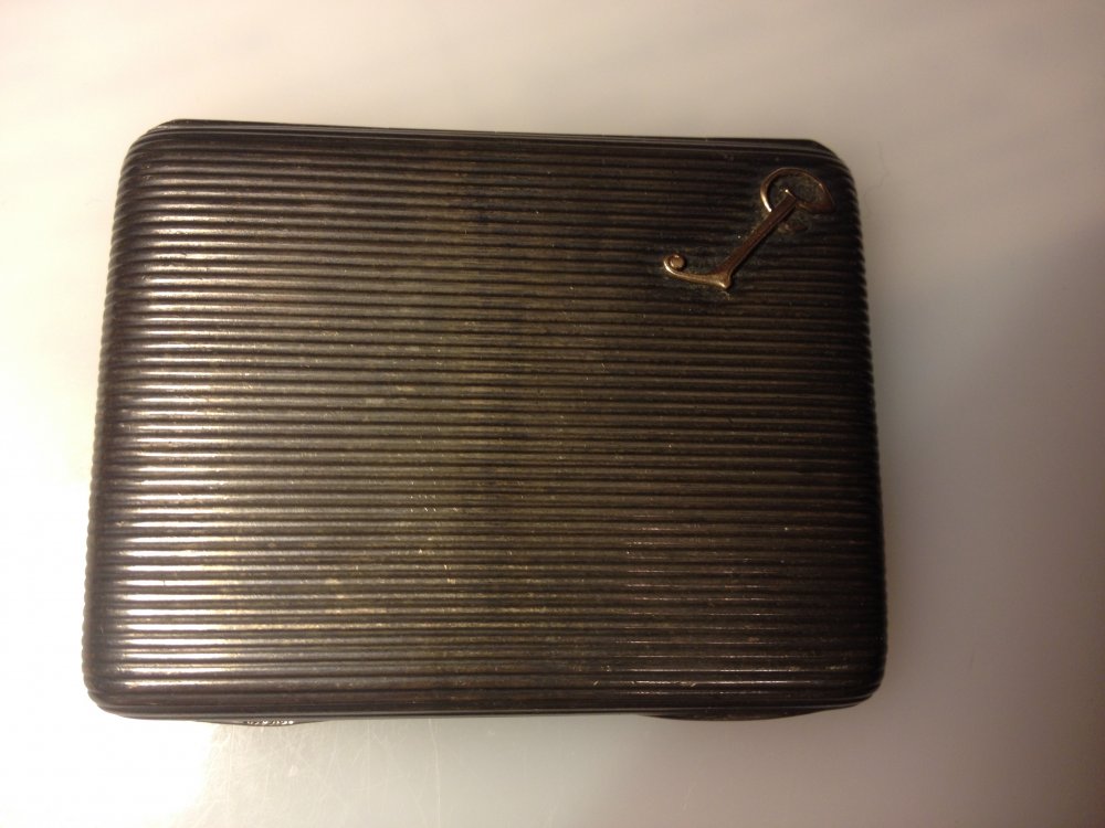 мало фото. 1) с чего он? серебро? 2)какие клейма имеются? 3)накладка на портсигаре , случаем не из золота?