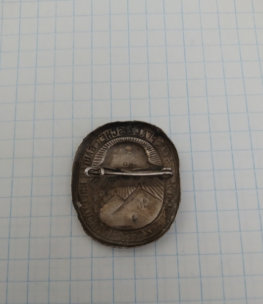 Значок со шлемом и горами памятный знак в честь первого собрания общества " немецкие любители леса" обычно переводится как " Ассоциация Лесников Германии ", дата написана внизу слева в городе , название которого написано внизу справа . Это типа советских туристов выходного дня или юных любителей природы , существует до сих пор . Ценность даже не могу себе представить .