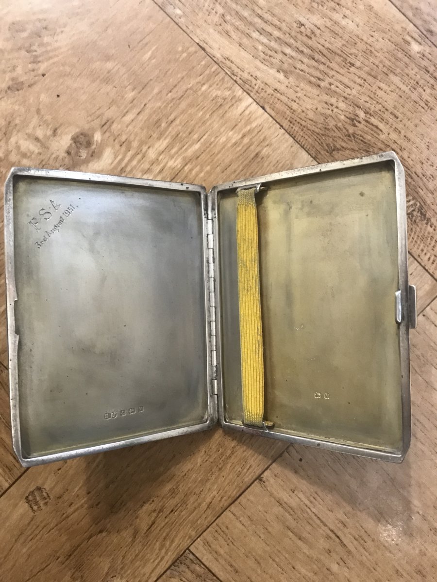 Выше вам верно все написали. Особой культурной-исторической ценности он не прелставляет. Низжая цена, от которой обычно отталкиваются - цена изделия, как лома,ну, и дальше вверх. Если учесть предложения и проходы подобных "английских" портсигаров, то цена его адекватная 4000-4500 грн, как повезет.
