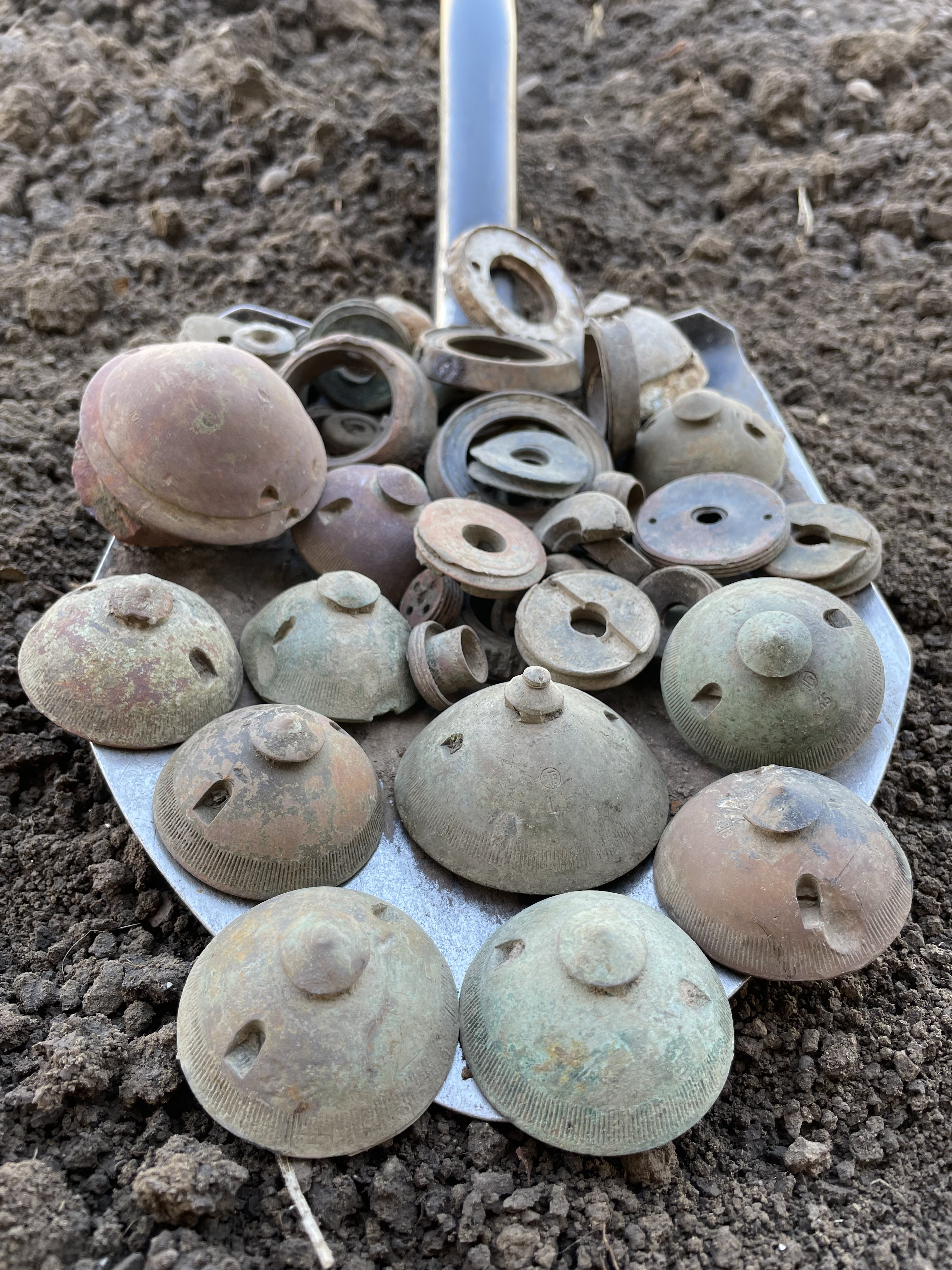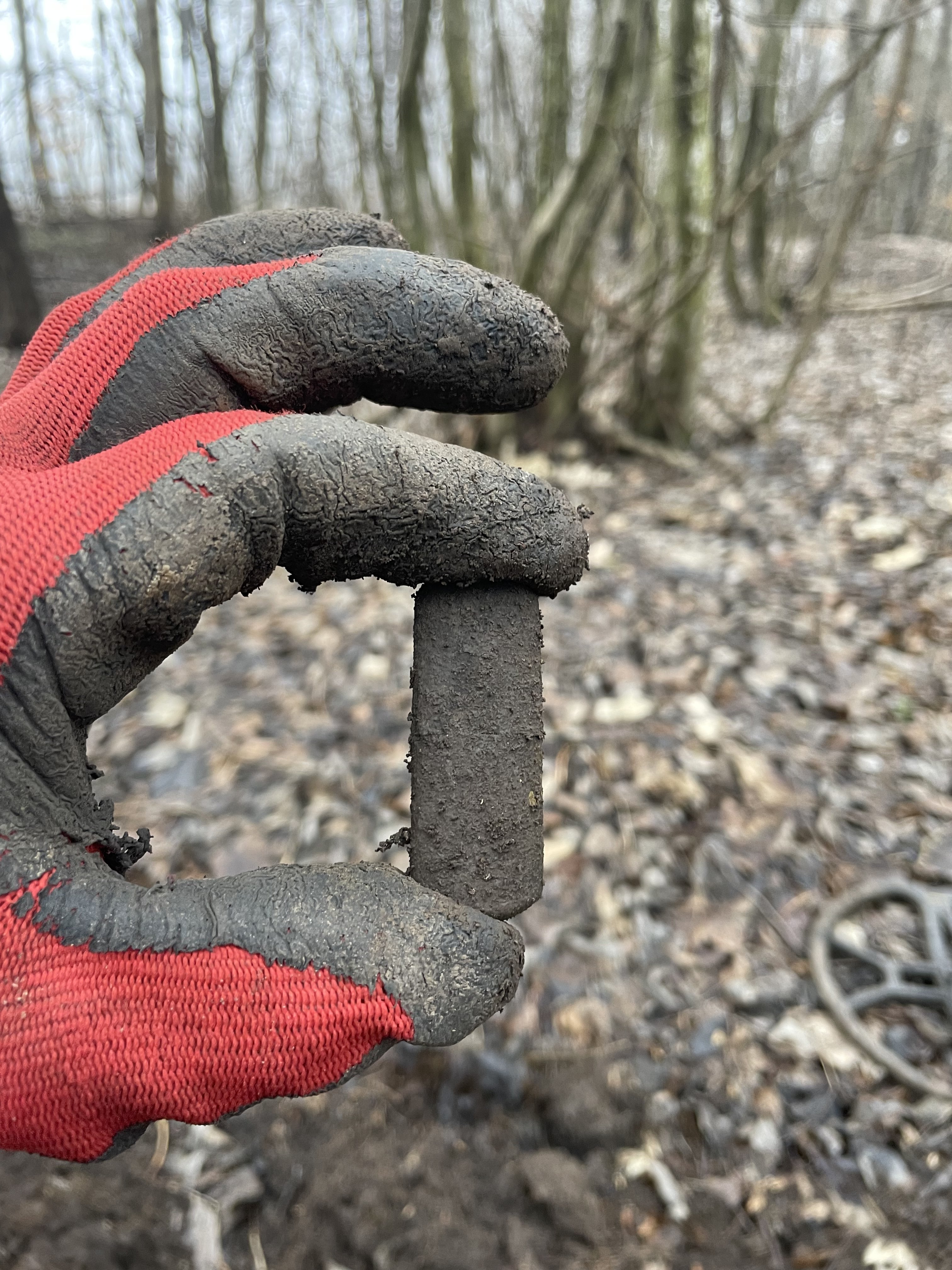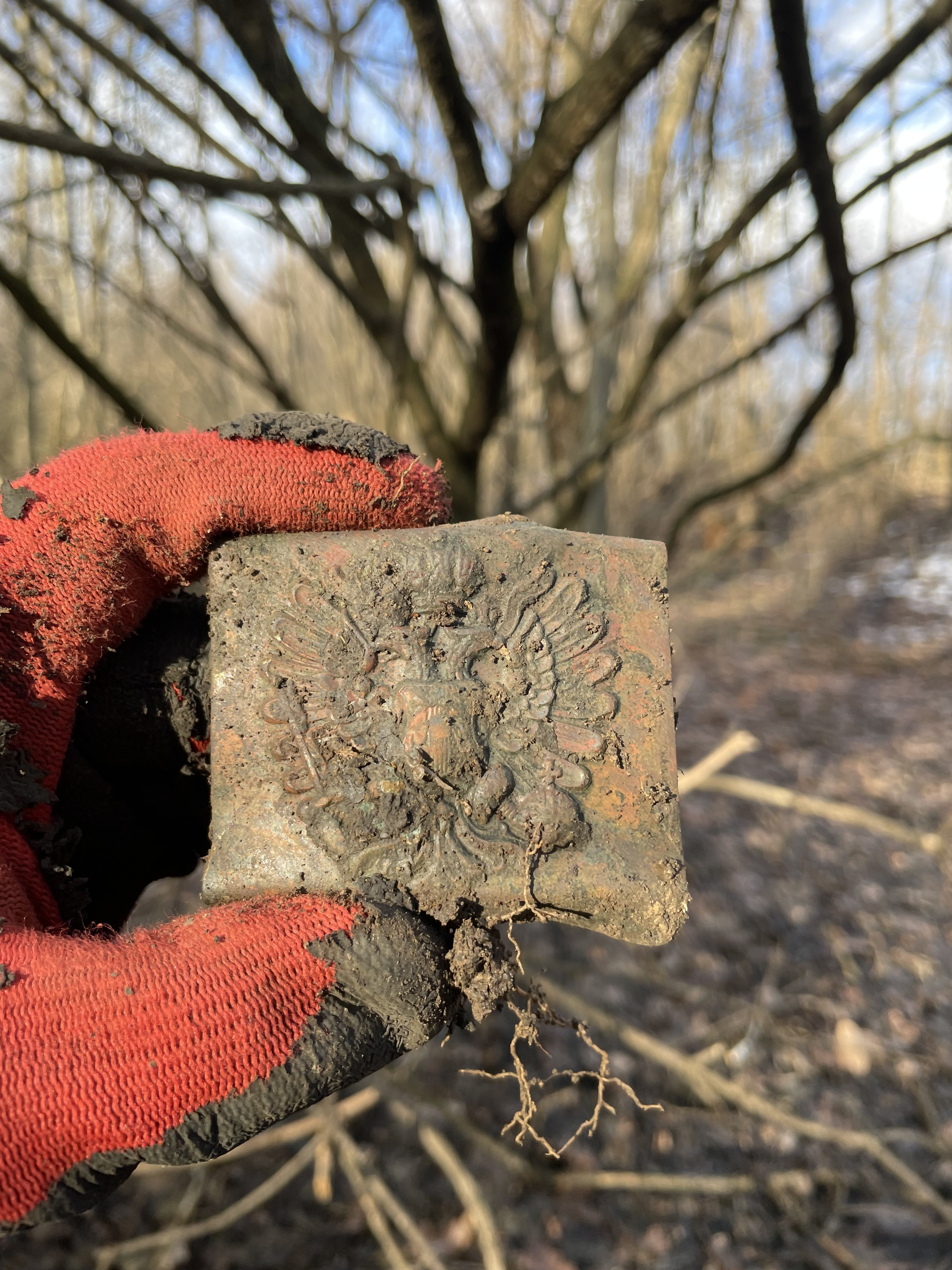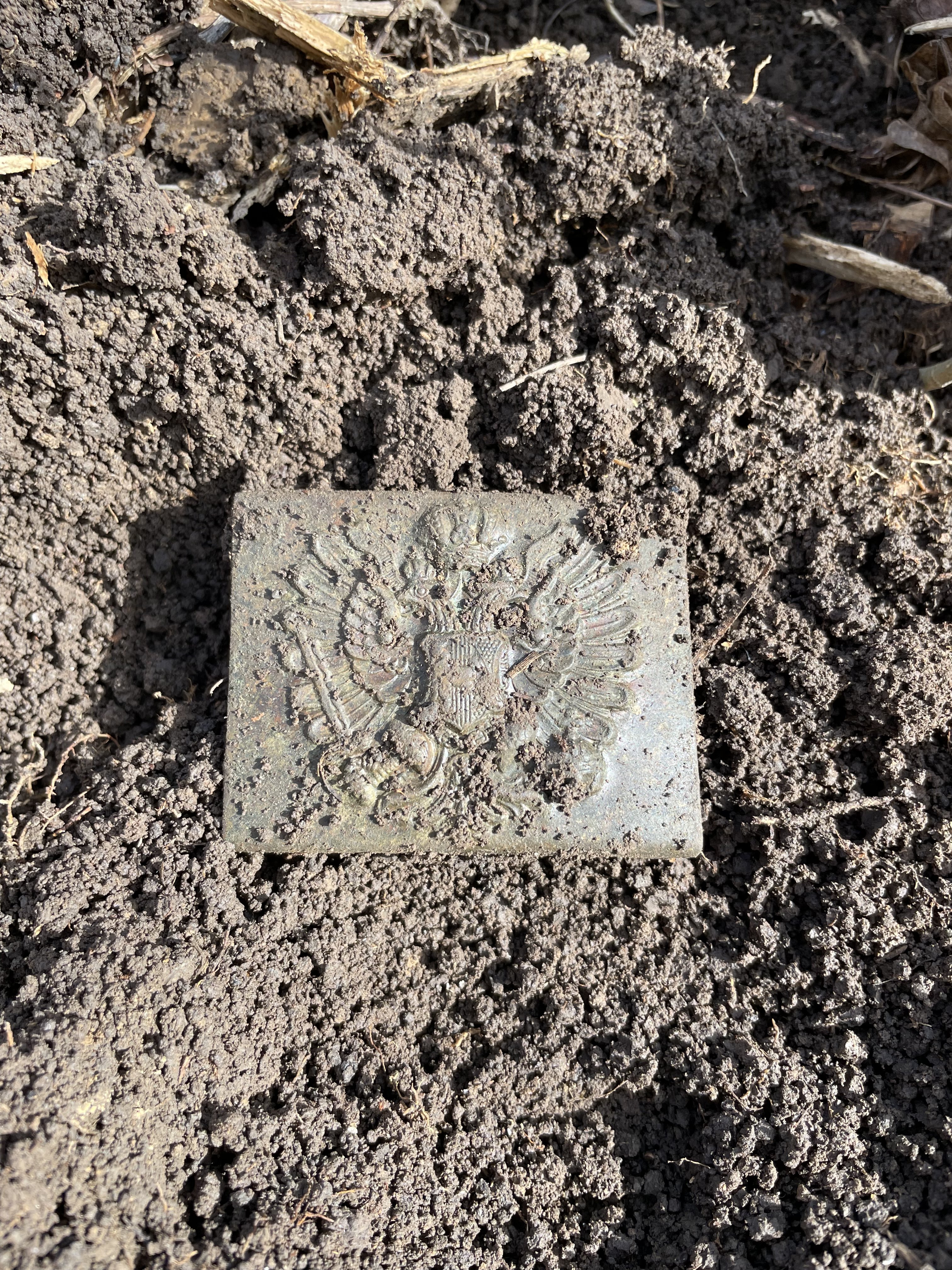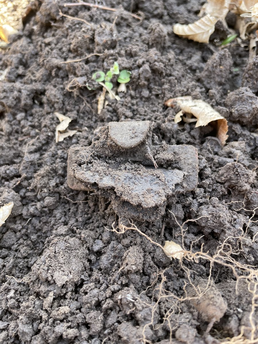 Дальше, все розпочалось з гільзів, викопав біля 10 кг. Потім чорним сигналом викопав прягу, а дальше заципив чорний сигнал ледве докопався, хотів залишати… друзі підкажіть від чого ця велика залізна штука