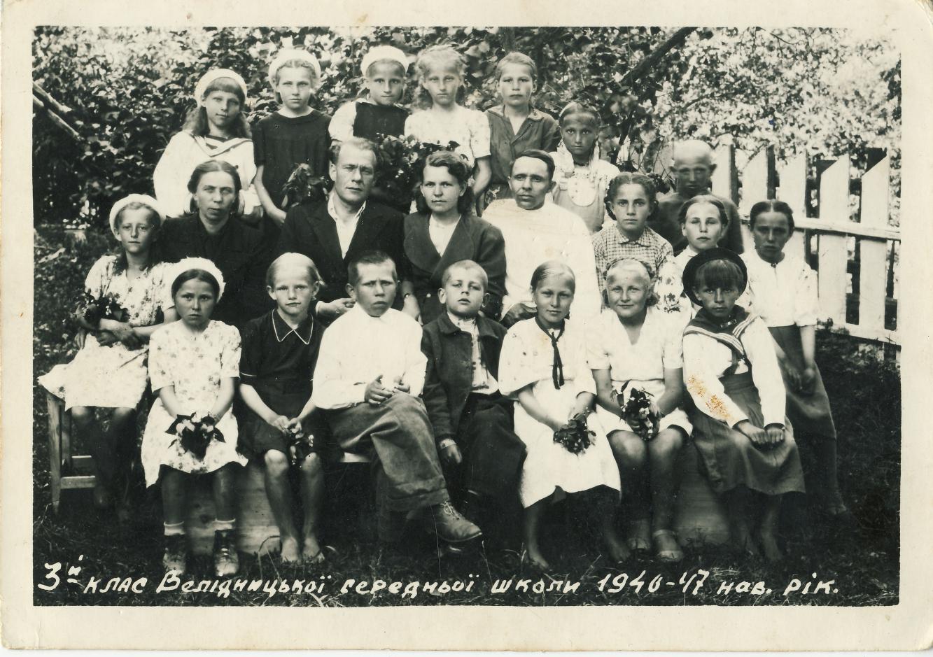 заметил интересную особеность во всех снимках после войны (школьных)практически нет мальчиков.максимум четверо.вот снимок где указан год.кстати как вам лица детей которые три года были в окупации?снимок олицетворяет эпоху.