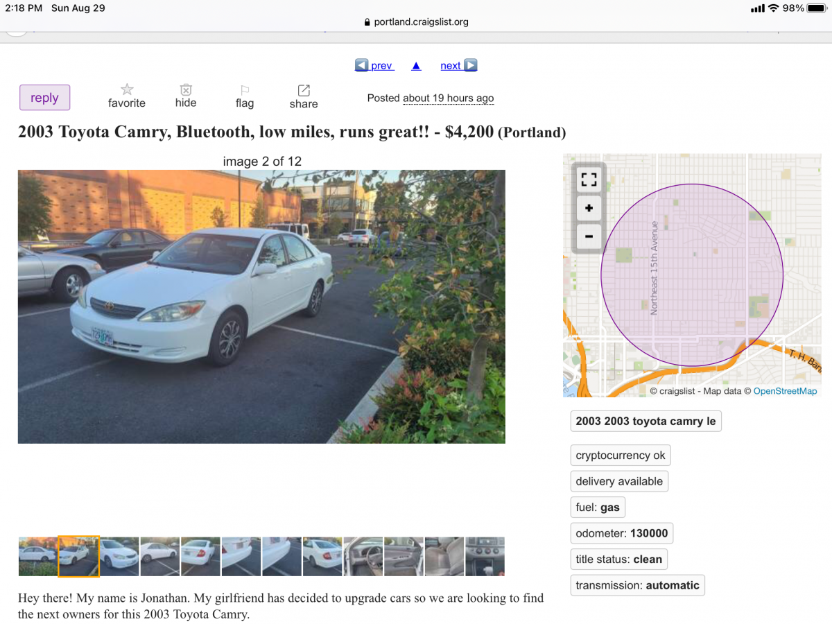 Вот 116 пробег но после аварии.https://portland.craigslist.org/mlt/cto/d/portland-2003-toyota-camry-116k-family/7372591609.html