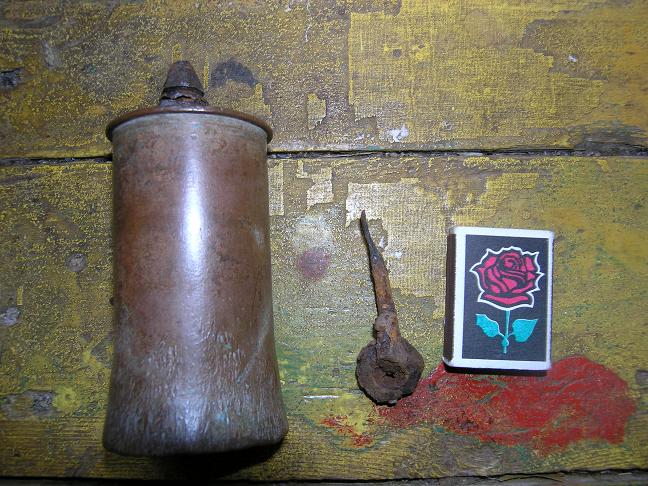 Вот нашел на развалинах деревни которая еще в войну стояла такую вещь. Сначала непонял что это, а потом дошло: кто использовал гильзу от 45-ки для изготовления колокольчика. Собираюсь починить его.