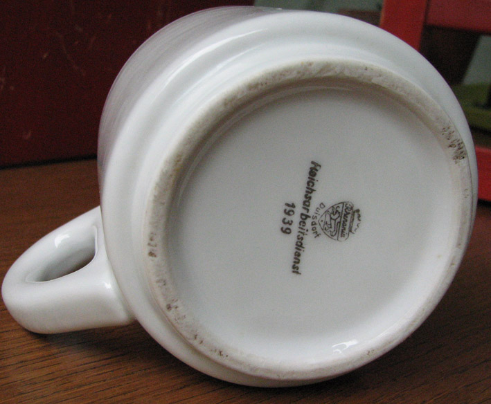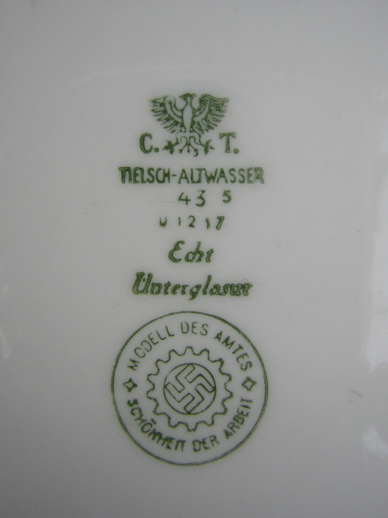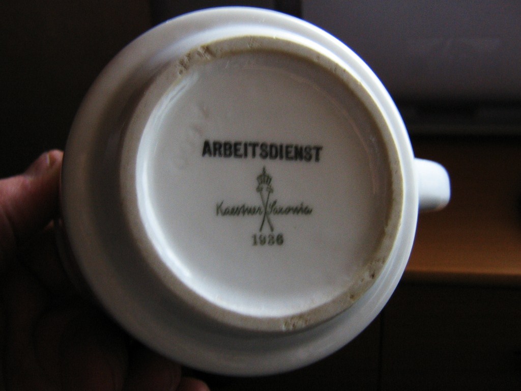 Это DAF (Deutsche Arbeitsfront. Германский трудовой фронт) RAD (Reichsarbeitsdienst.Имперская служба труда)Reichsarbeitsdienst посуда другая!!! - эмблема у RAD лопата и на ней свастика. Но на посуде была только надпись Reichsarbeitsdienst, фабрика изготовитель посуды и год! Свастик нет!