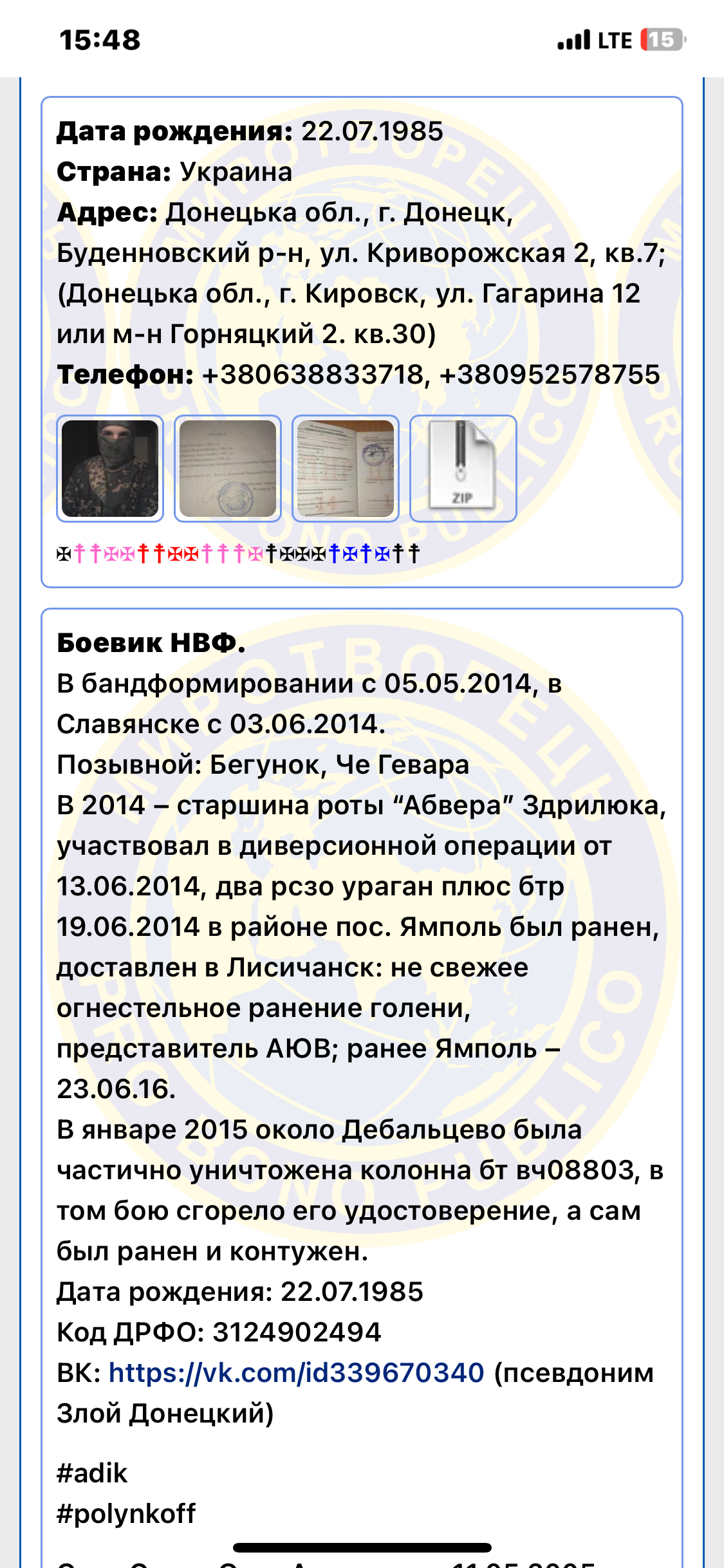 Ну безпосередньо посвідчення було знайдено в 2014 р. Направлення Ч. Лиман ямпіль, тікали вони тоді як щури, ну то таке(приємні спогади)а подальша доля невідома, ну допис в неті радує, надіюсь подох