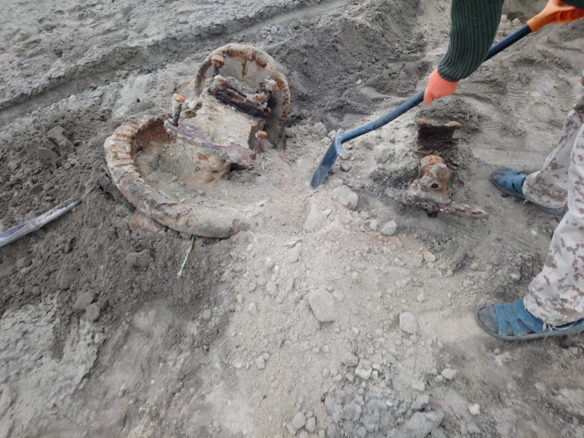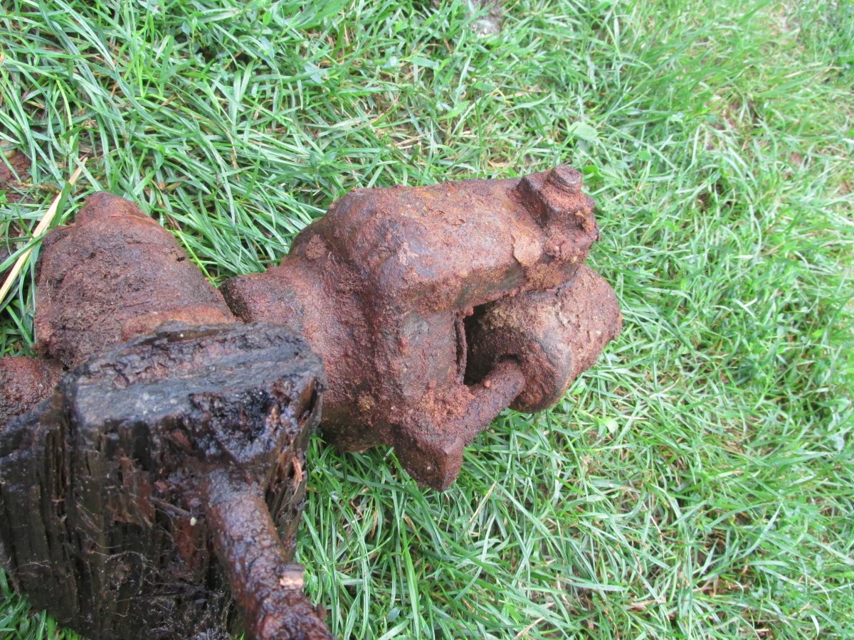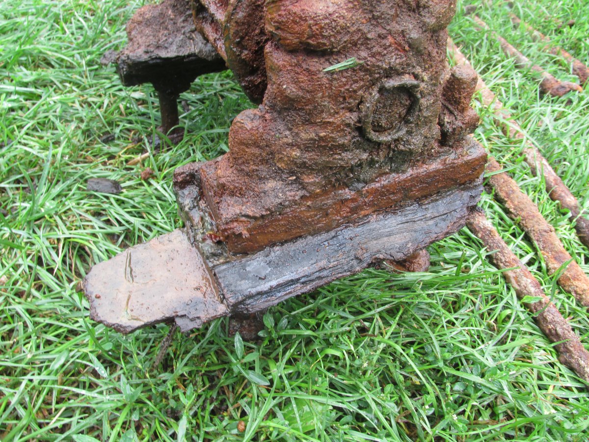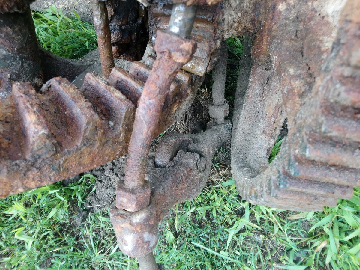 були також на механізмі залишки дерева на болтах, ( мабуть кріпилось до дерева )