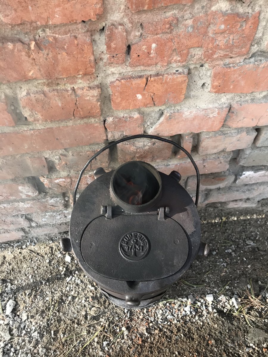 Здравствуйте. Прошу оценить печку в таком сохране. Не копанная. Ручка родная. Поверхностная чистка щёткой по металлу. Метал крепкий, свищей нету. Из дефектов - вмятина на корпусе и оторванное «ухо». Спасибо!