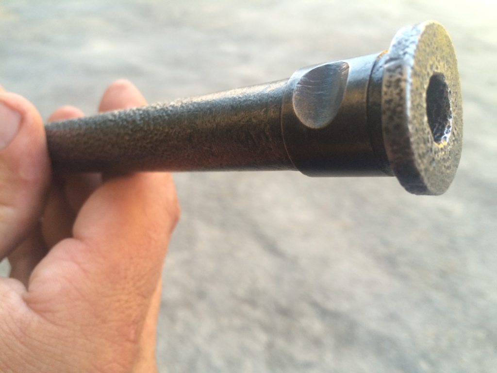 Вставь течерез верхнее окно болт или удлинилеть от набора инструментов . И просто ударом молотка выбиваете. Предварительно чуть подчистите , пару раз прогрейте места сопряжения , побрызгайте ВД - шкой , чтобы ствол не был закисшим в коробке
