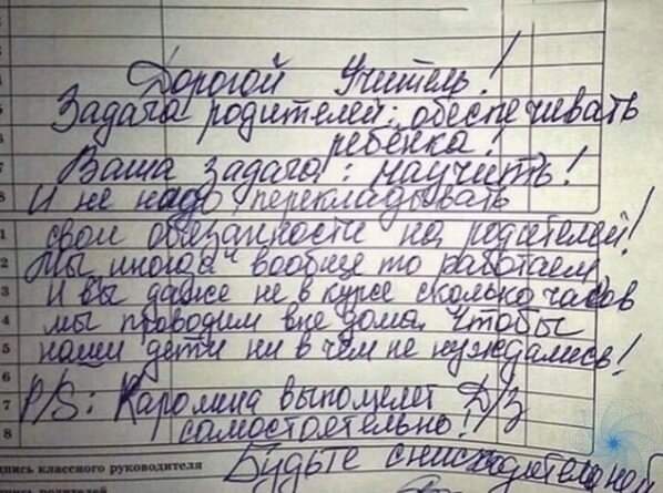Вот почему одни родители думают о своих детях хотят чтобы в школе был лучший учитель и качественное образование , а другие как паразиты готовы только пользоваться этим и нести чушь в своё оправдание. С УВ