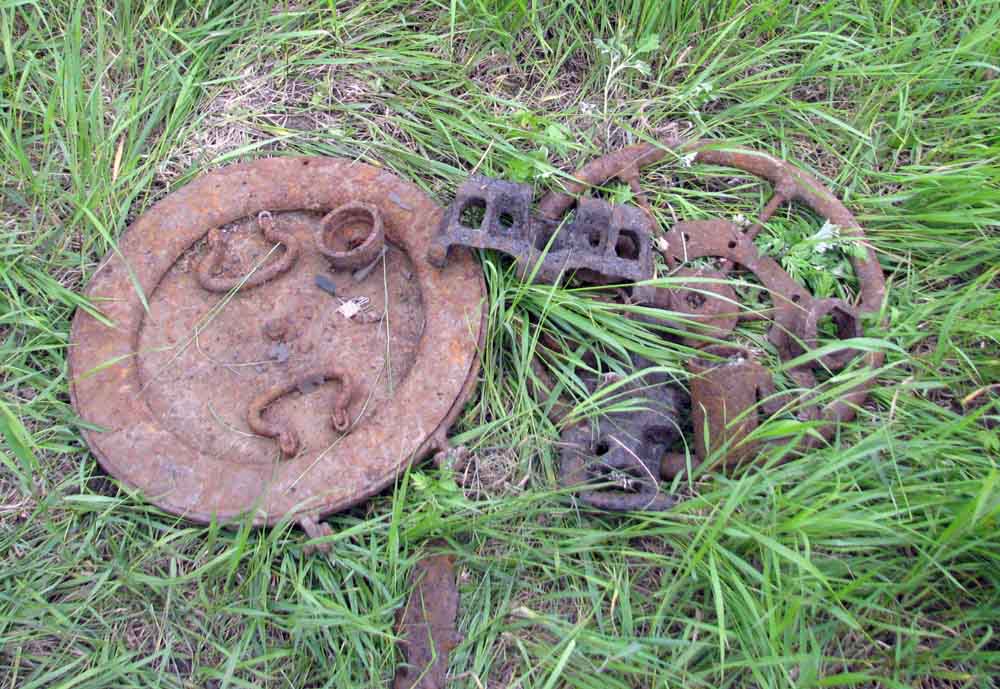 Не обошлось и без казусов. Принял за мину то что осталось от руля какогото транспортного средства фоткать его не стал, и брать его тоже о чем сейчас жалею. Руль не современный, трех спицывой, спицы причудливо загнуты к рулевой ступице. Метрах в 30ти от руля нашел цепь похожую на мотоциклетную только шире и длиннее.