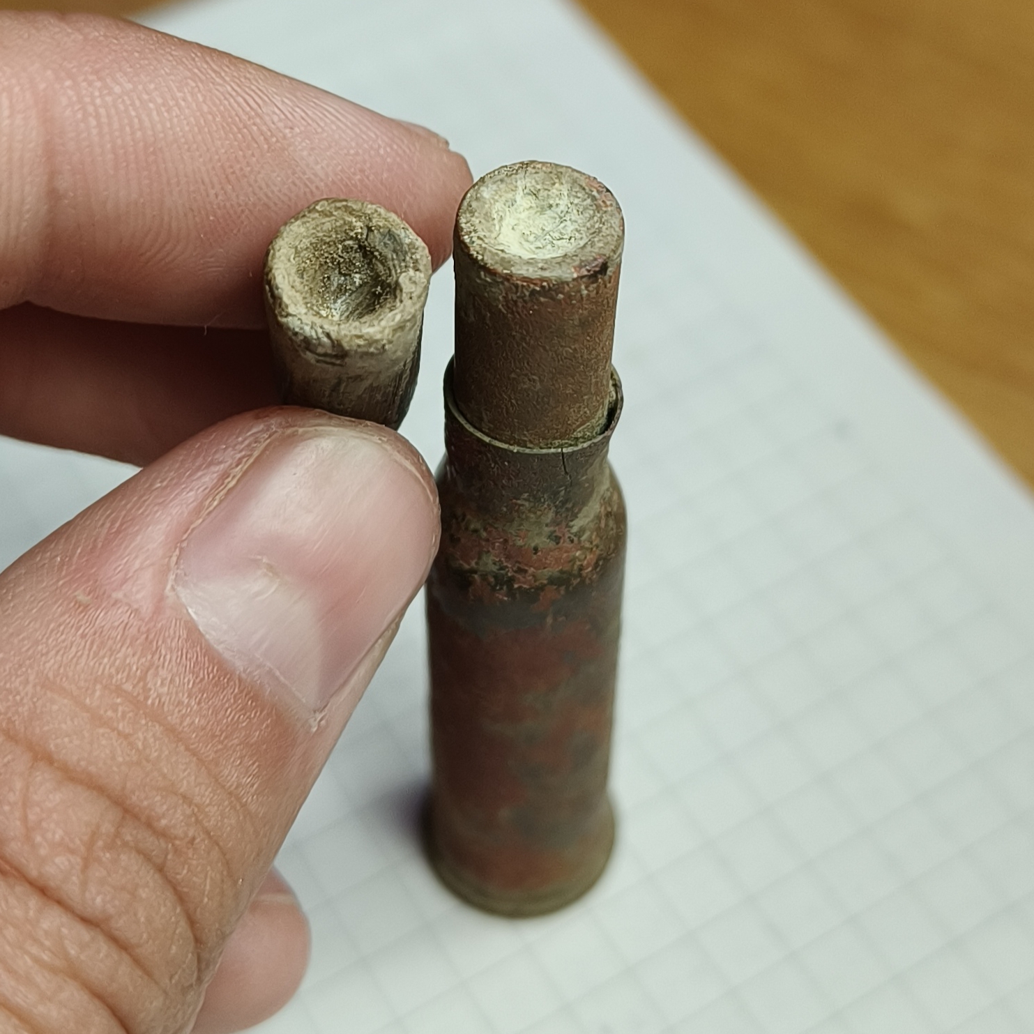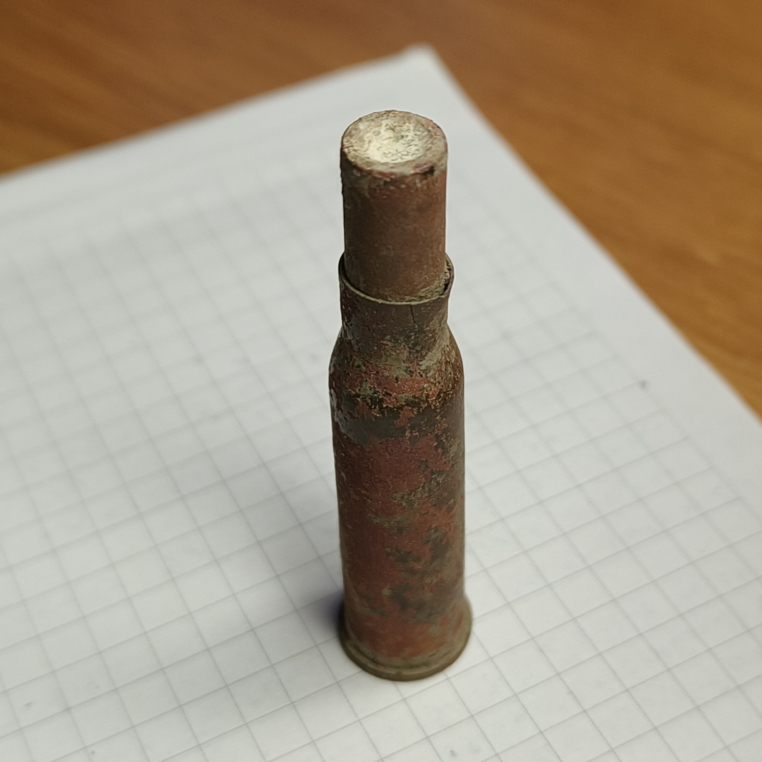 Зверху не було нічого, під краї було набито, знайдено на бойових позиціях у окопі разом з бойовими патронами з такими заукругленими кулями, як ви скинули