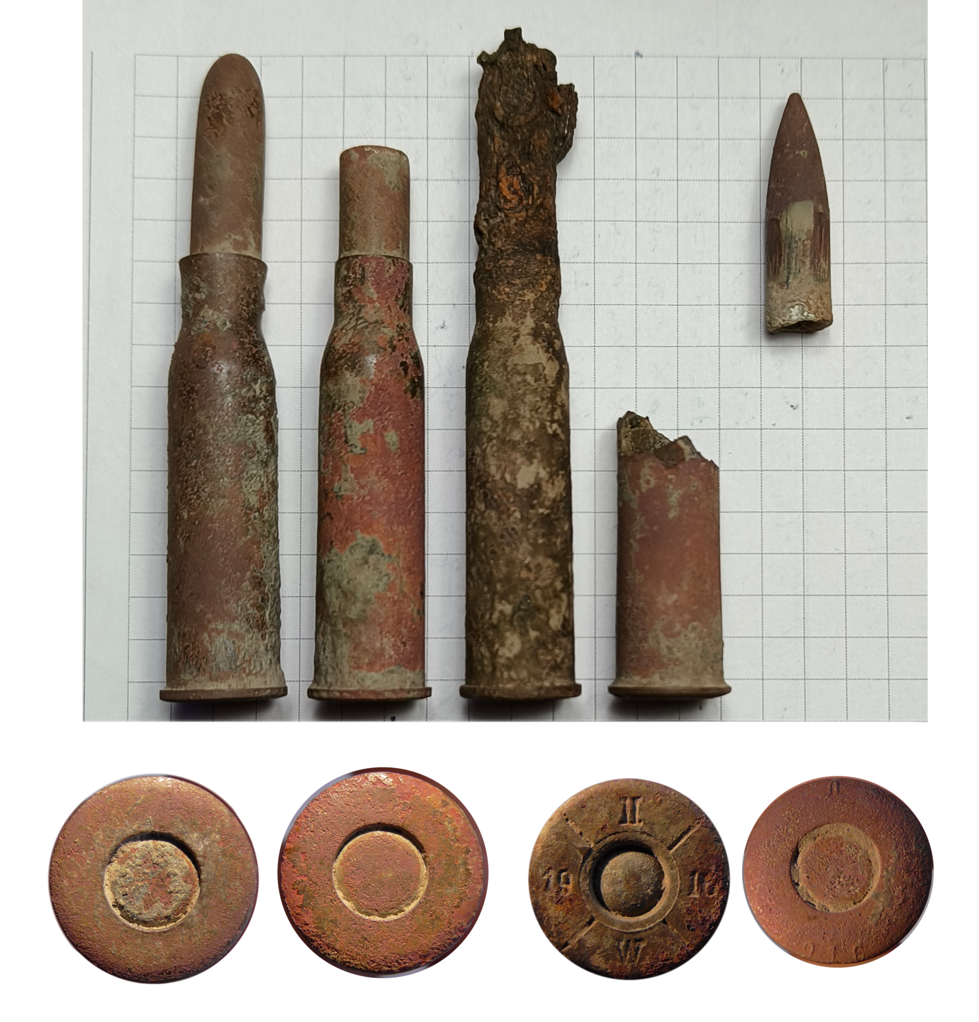 В цій околиці я знайшов патрони від ППШ 7 шт. (1944). А також Декілька патронів від якоїсь гвинтівки Першої світової.