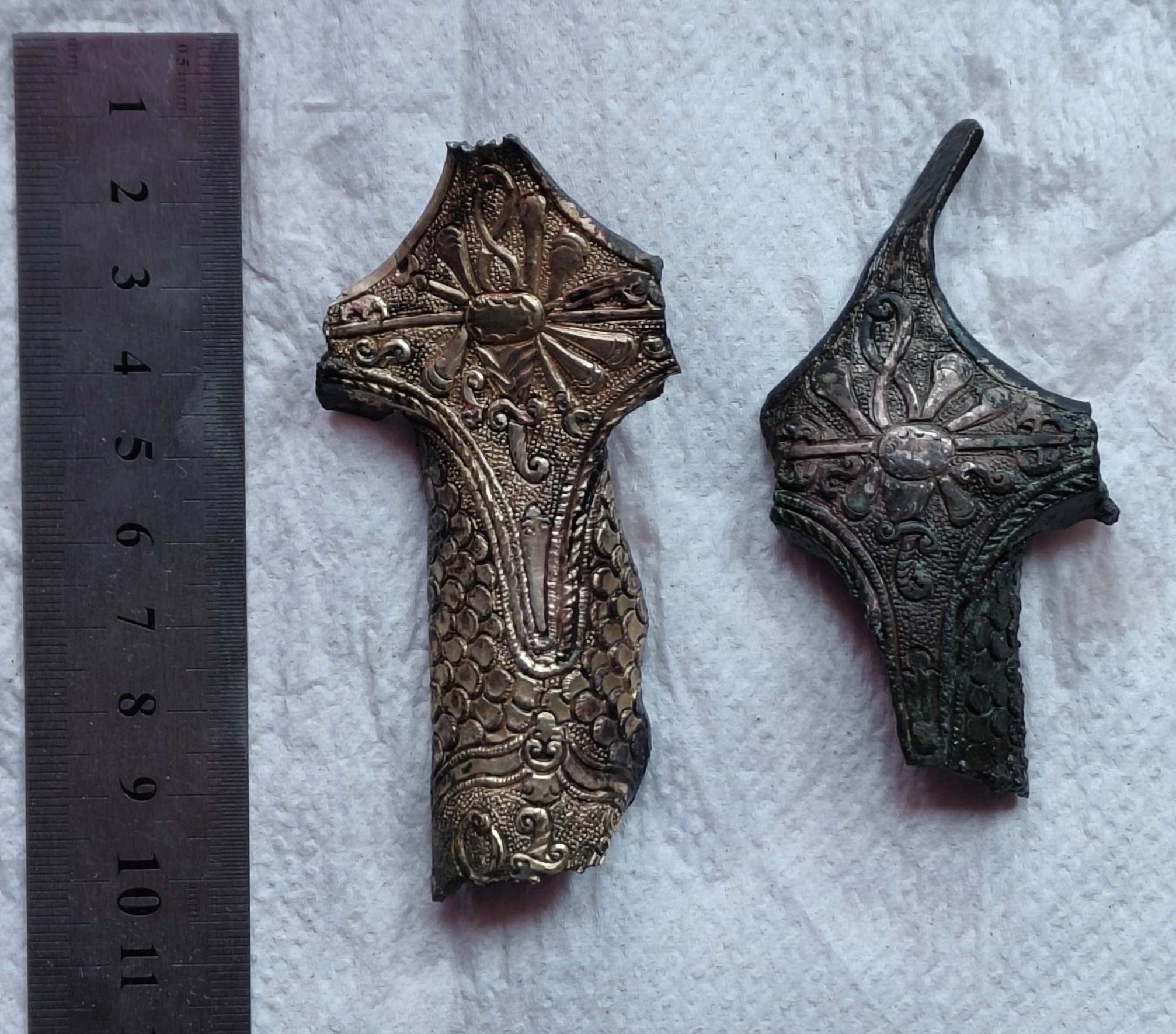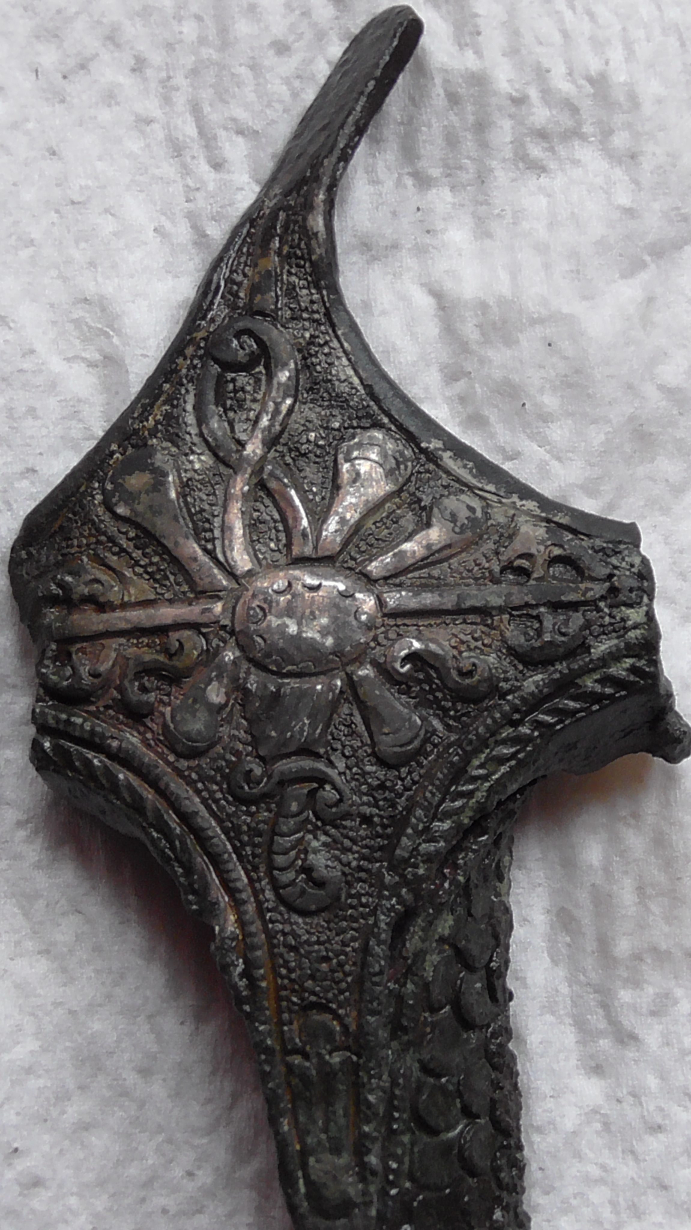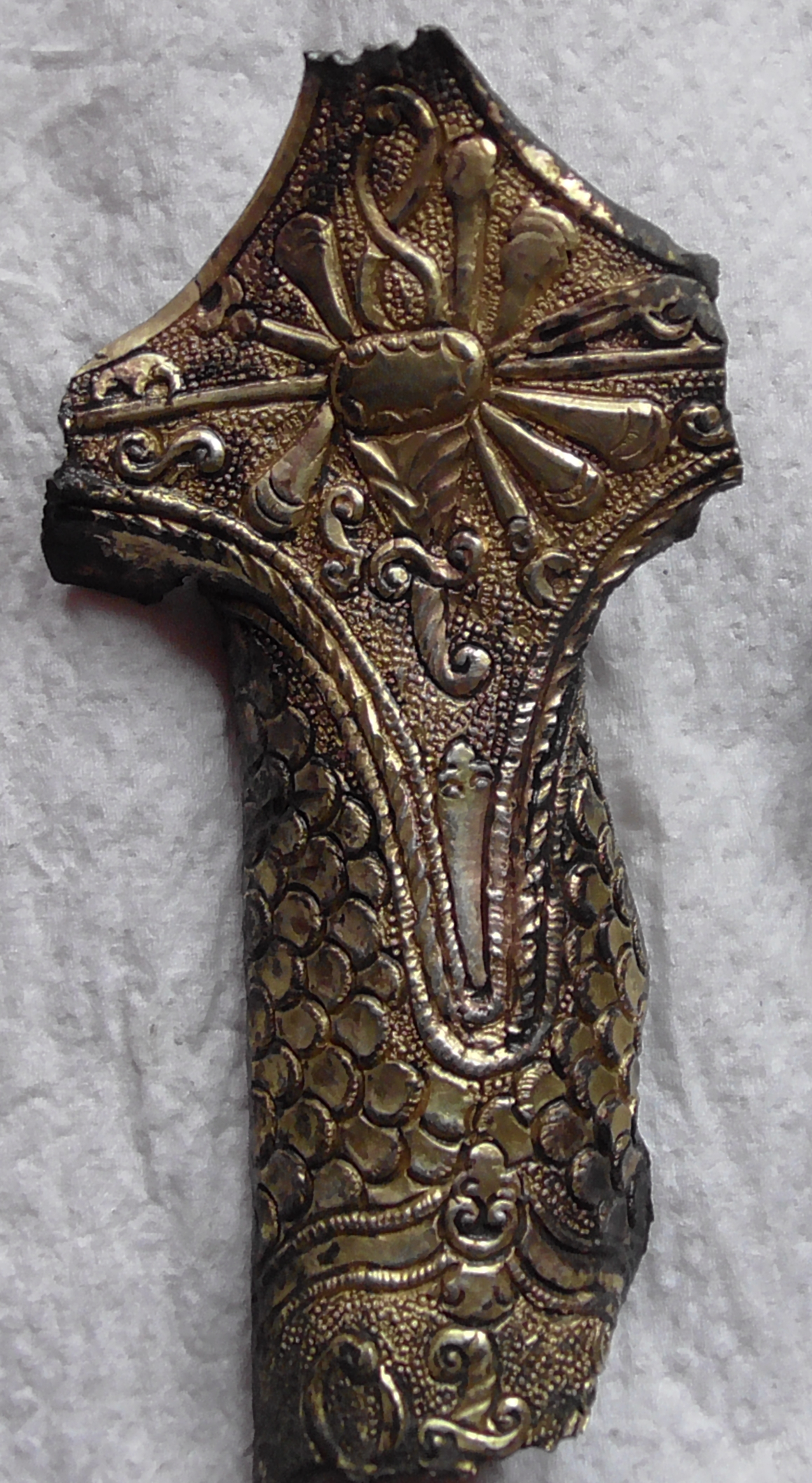 Вітаю.Можливо залишки якихось дуже декоративних накладок на рукятку і гарду шаблі корабели...