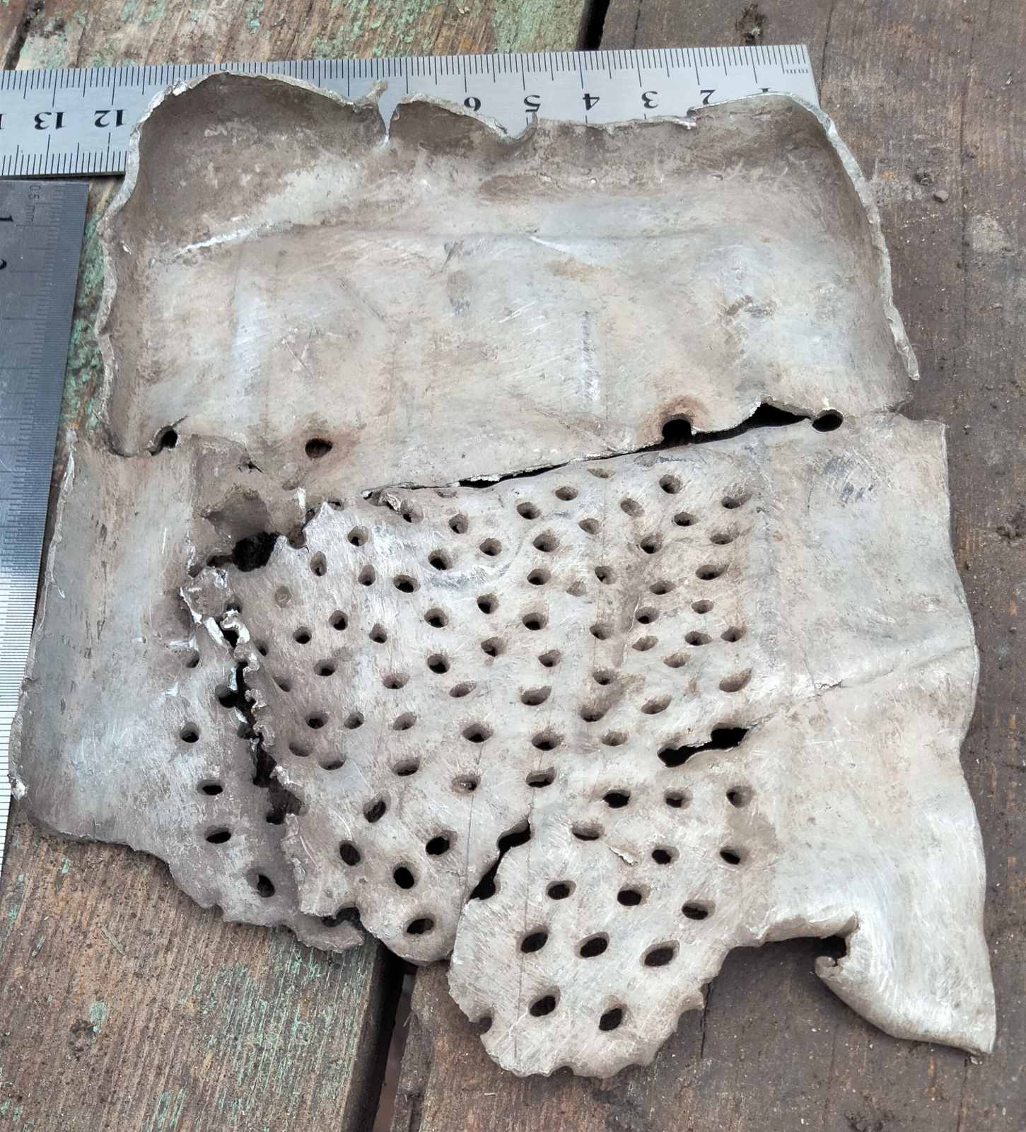 Вітаю джентльменів, прошу допомоги у визначенні даного предмету. На місці зниклого села знайдено ось така приспособа. Бачу, що отвори зроблені вручну. Під час ДСВ в 43-44 р.р. в селі стояли німаки і італійці. Артилерія, 105 мм. Можливо хто впізнає даний предмет, що воно було при житті? Що за клеймо? Німечеське чи італійське? Дякую всім прийнявшим участь у визначенні і обговоренні.