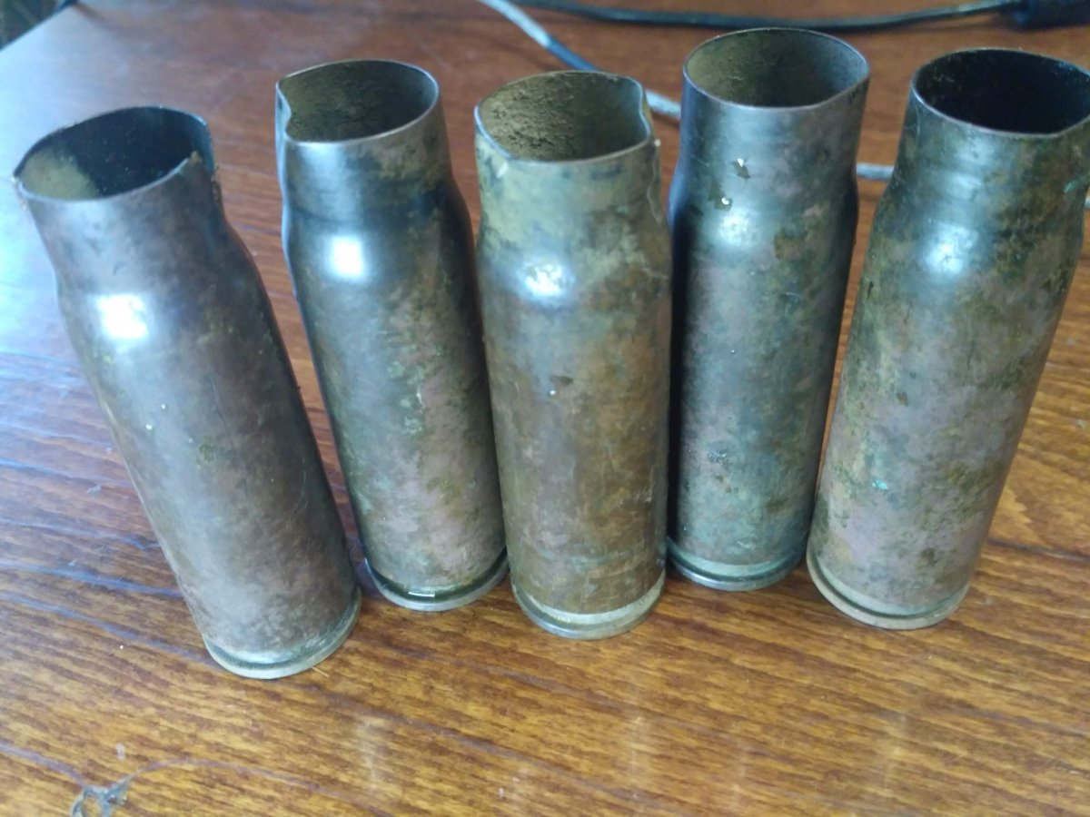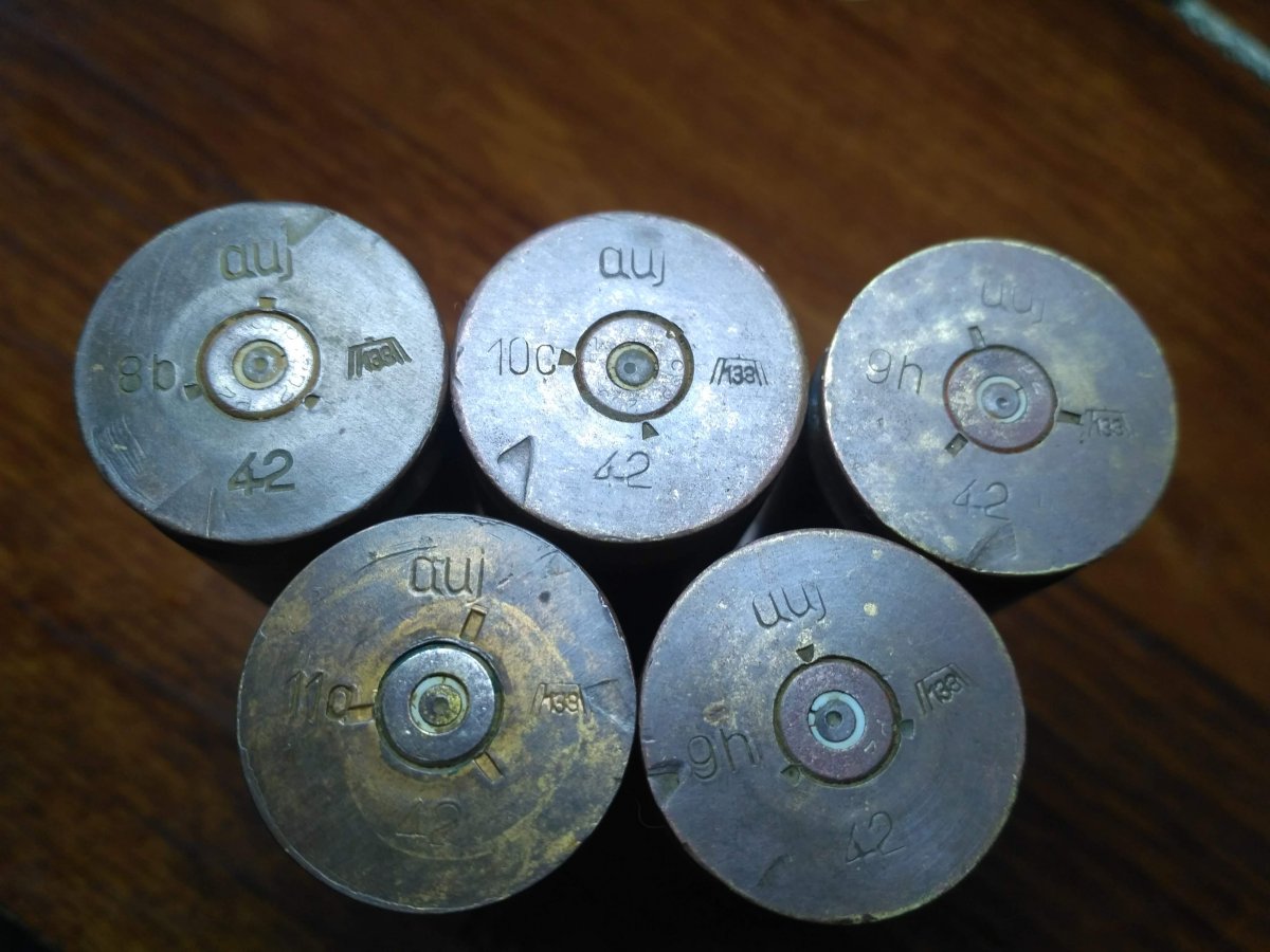 5 одинаковых гильз больших, это мг-151/20. Относительно нечастые.