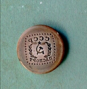 Эта вторая часть оттиска в паспортах образца 1974 года. Т.е. на фото в паспортах ставилось внизу " паспорт СССР", а в верхнем углу именно она...