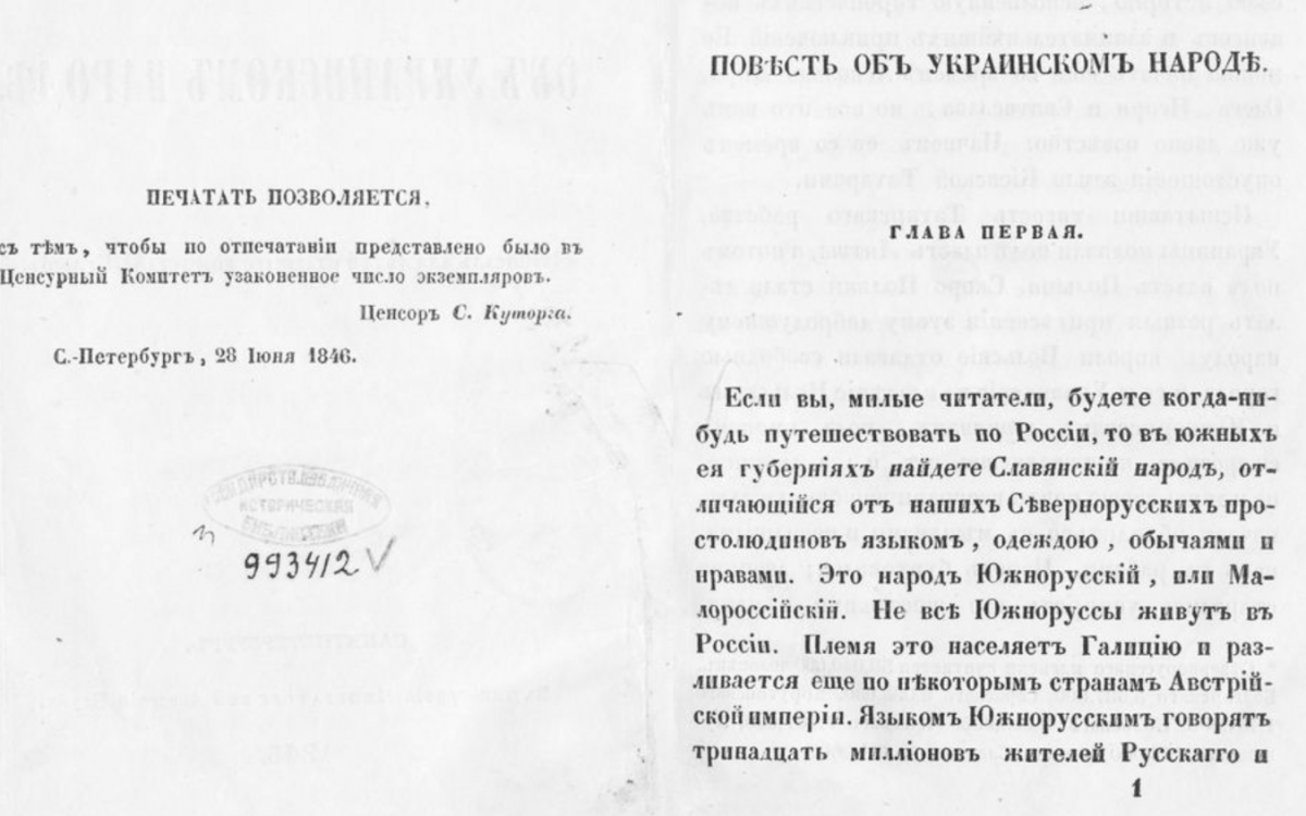 на пост #56 Шо характерно, так это то, что в работе "Повесть об Украинском народе" 1846 г. Пантелеймона Кулиша, термин "малороссийский" встречается всего два раза - в самом начале повести (на первой странице) и в самом конце повести (в оглавлении) ибо автор обязан был по причине царской цензуры, которая требовала применения определенных маркеров и терминов, упоминать слова: "малороссийский", "малороссия", которые были не свойственны украинскому народу ибо он себя никогда не именовал "малороссами" и никогда не называл свою страну "малороссией". Московия была и остается до сих пор полицейским государством во всех сферах жизни московитов (расеян), поэтому все книги в Московии проходили через Цензурный Комитет, что мы и видим, благодаря стараниям аффтара поста #56 Примечателен тот факт, что в своей работе "Повесть об Украинском народе" Пантелеймон Кулиш всегда называет украинцев Украинский народ (с заглавной буквы), а нашу страну называет всегда Украина (и никогда не называет ее Малороссия). В тот же момент, применительно к территории современной РФ, он использует термины: "царство Московское", "Московское царство", а ее жителей именует "московитяне", ихнего царя "московский царь"... но никогда не применяет в своей работе термины "Россия" или "российский царь", "русские" Потому что то образование, которое сейчас именуется "Россия", даже в 19 веке "Россией" никто не называл даже в книгах, прошедших царскую цензуру...
