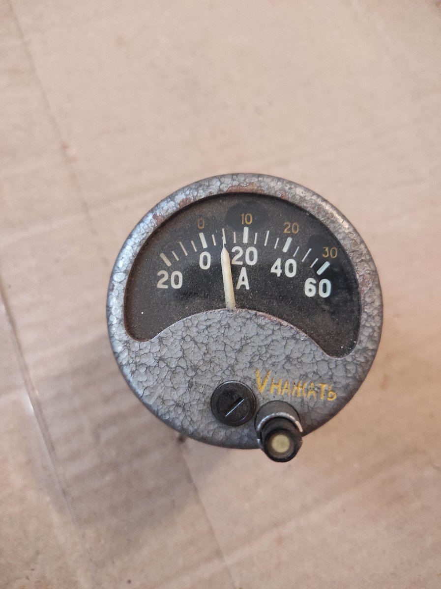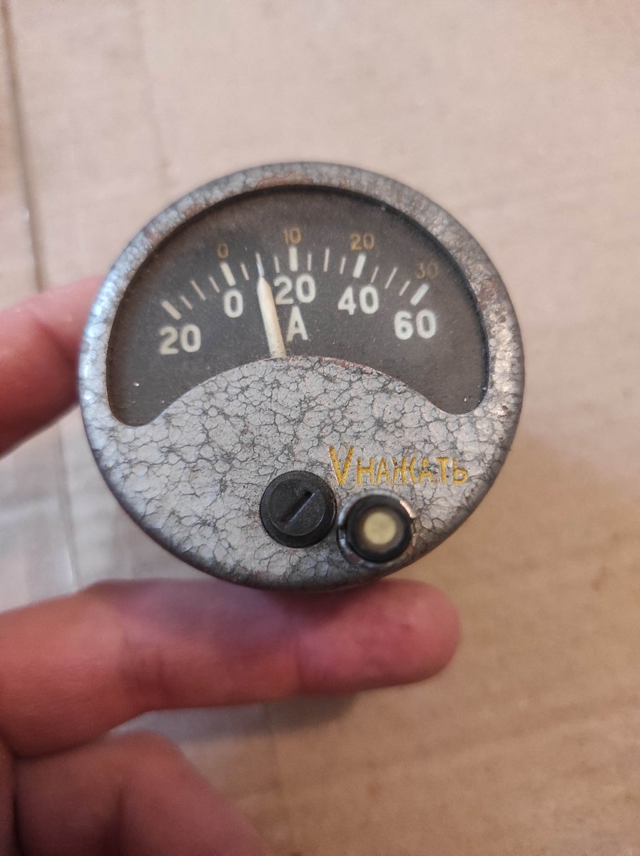 Авіаційний вольтамперметр. У режимі вольтметра працює лише при натиснутій кнопці. Для комплекту невистачає роз'єму та шунта.