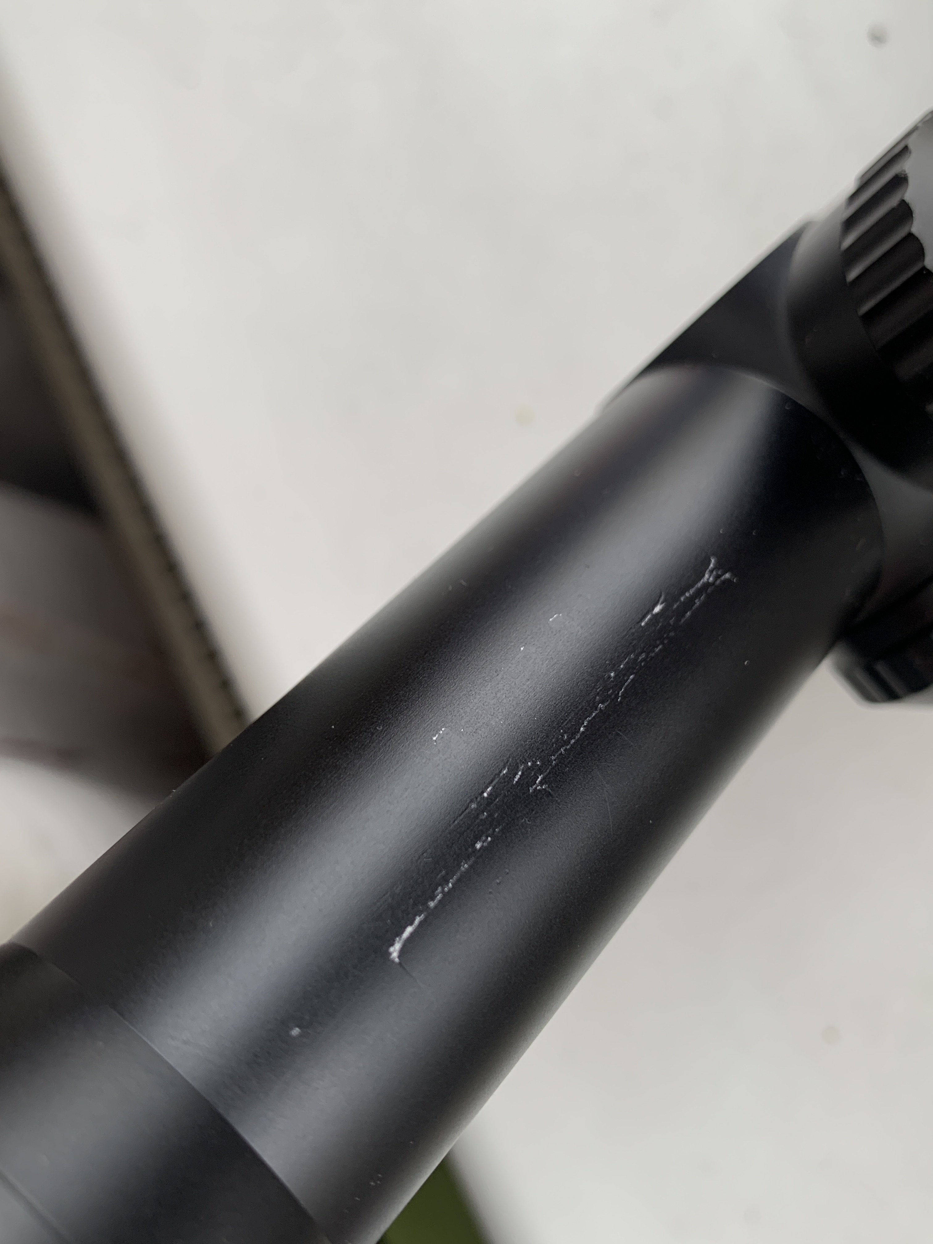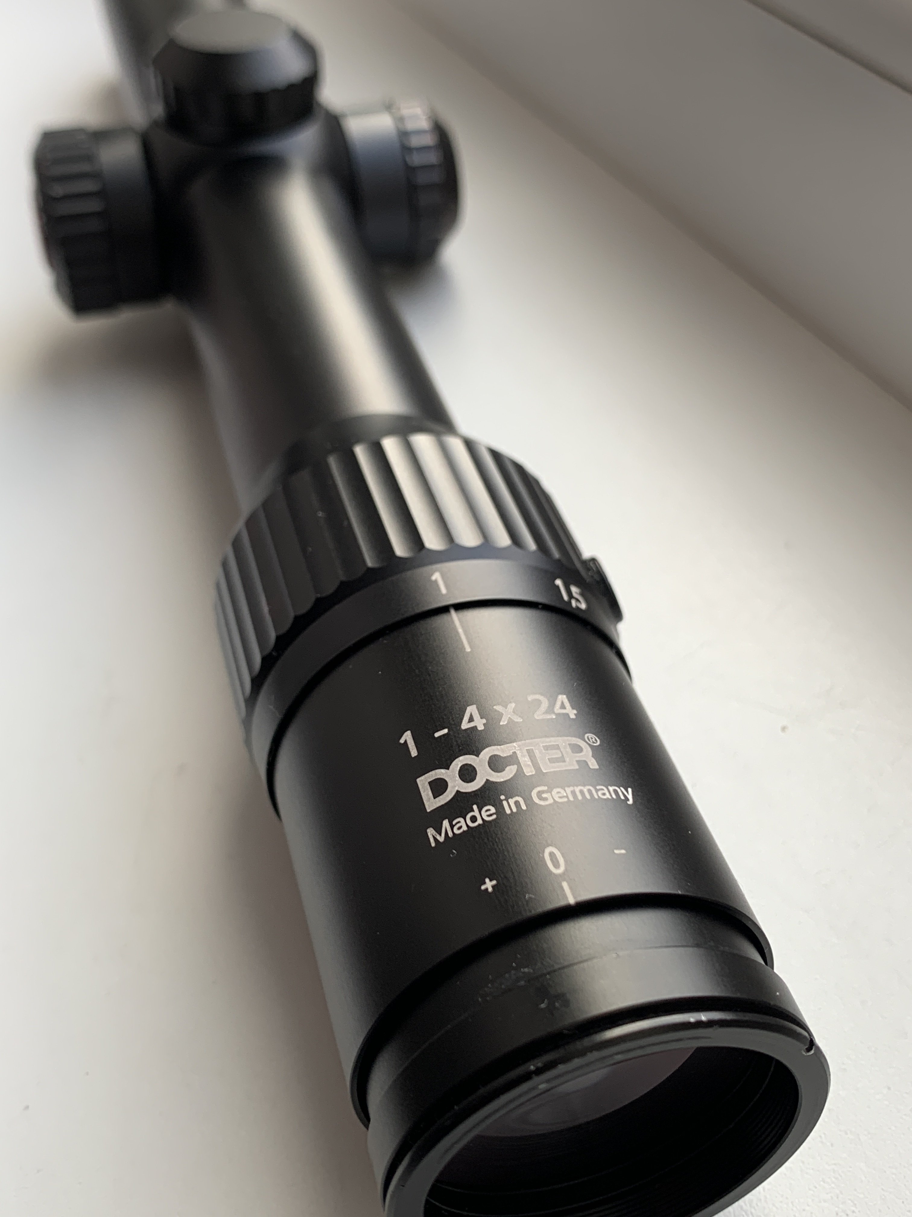 Б\у прицел Docter Unipoint 1-4x24 Поле зрения на 100м - 31м - 10,6м Вес - 510 грамм Длина - 510мм Удаление от глаза - 90 мм Центральная труба - 30мм Tripcontrol - система автоматического управления подсветкой Прицельная сетка - 4-0 ( точка во 2-ой фокальной плоскости, линии в 1-ой как у Zeiss Varipoint) Отсутствует резиновое кольцо на окуляре, имеются следы от установки колец. 580 долл о99-зб5-1бб2.