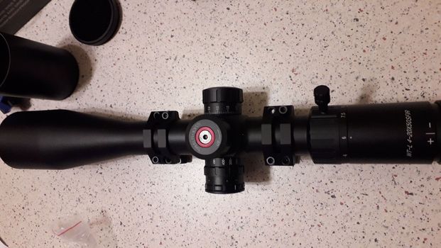 продам прицел новый, тактические барабаны 1клик=1/10мil, диаметр трубы 30мм, вес 670г, длинна 38см, отстройка паралакса боковая+подсветка. в комплекте бленда, кольца колпачки