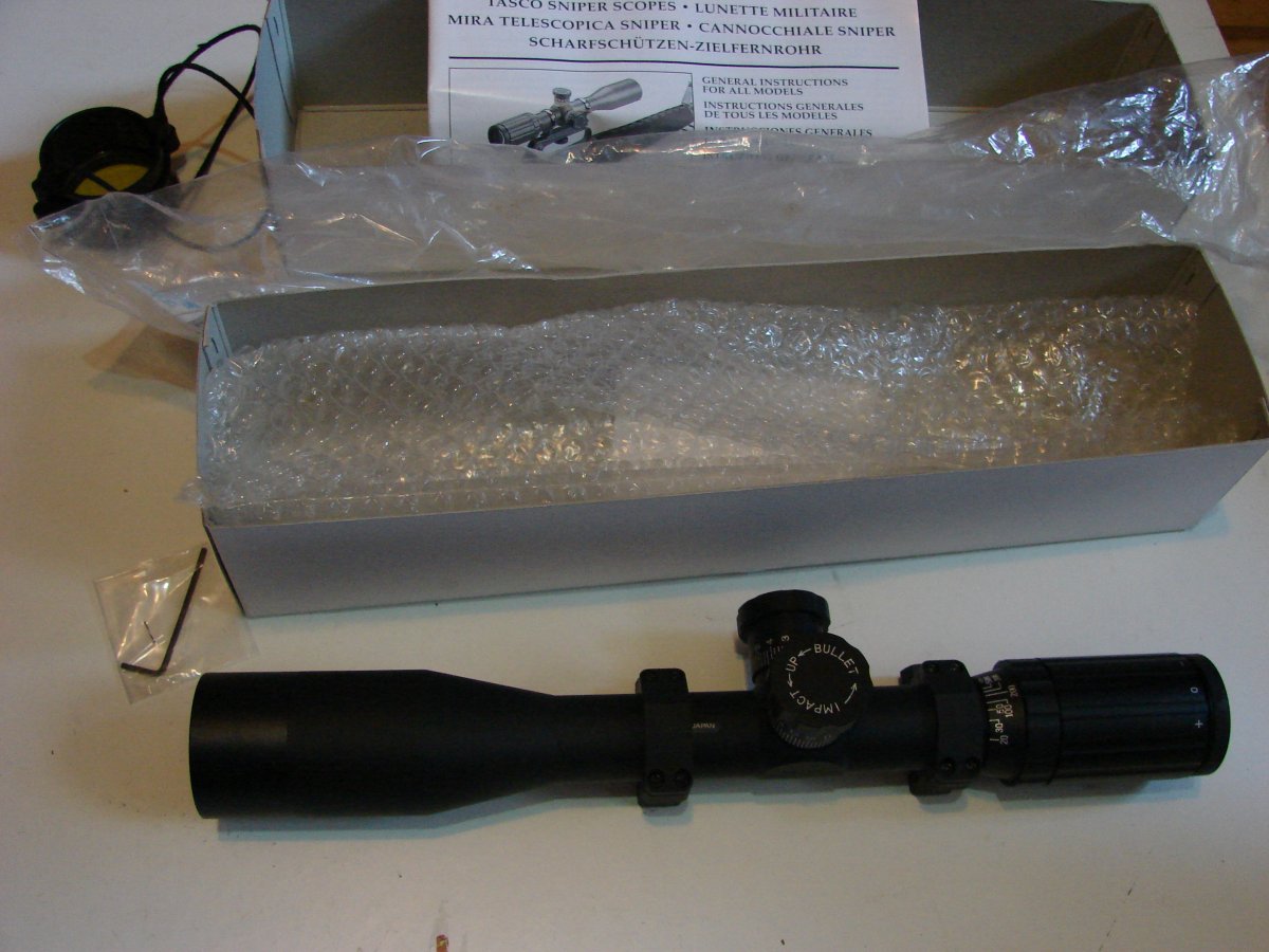 Привіз ще одну SS-ку. На цей раз під брендом Kenko, але того ж самого японського розливу. Прицільна сітка - Mil-dot; Стан - б/в (трошки гірший від попередніх через потертості на барабанах) але повністю функціональний (докладніше по фото). Комплектність - тільки приціл, без паперів та упаковання (кільця продаються окремо). Зважаючи на косметичні недоліки та бренд, ціна супер демократична - 5800 гривень.