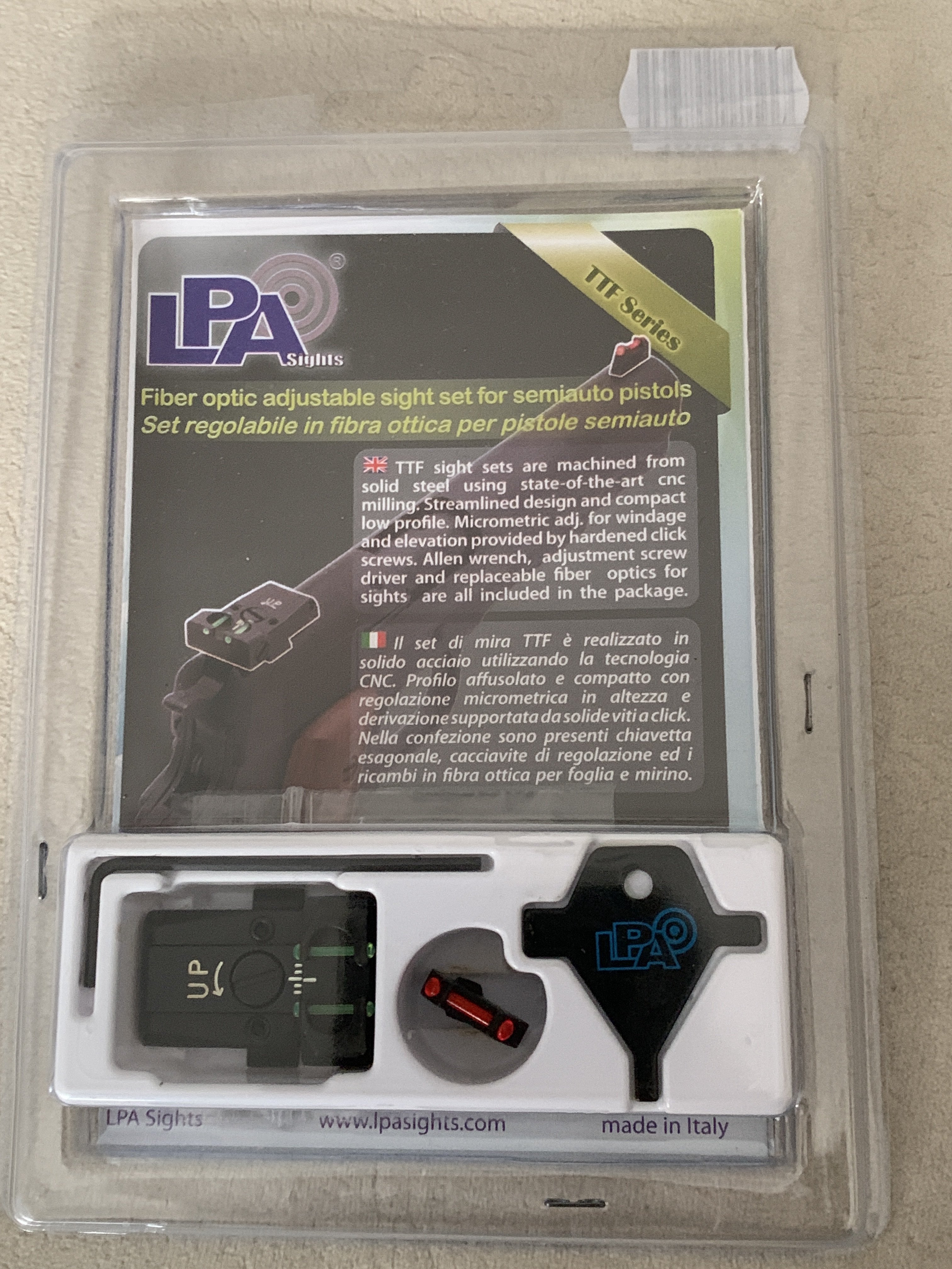 Продам прицільні на пістолет Glock17(19,26,34). Прицільні спортивні італійської фірми LPA. Оптоволоконні вставки- зелені на цілику, та червоний на мушці. Стальні, Цілик регульований в двох площинах. Ціна 6000 грн за комплект. Високі прицільні під пбс, або каліматор, виробництва США, стальні. Ціна 6000 грн. Прицільні з трітієвими марками, стальні. Ціна 5000 грн. Прицільні з оптоволоконними вставками. Алюміній. Ціна 1500 грн,