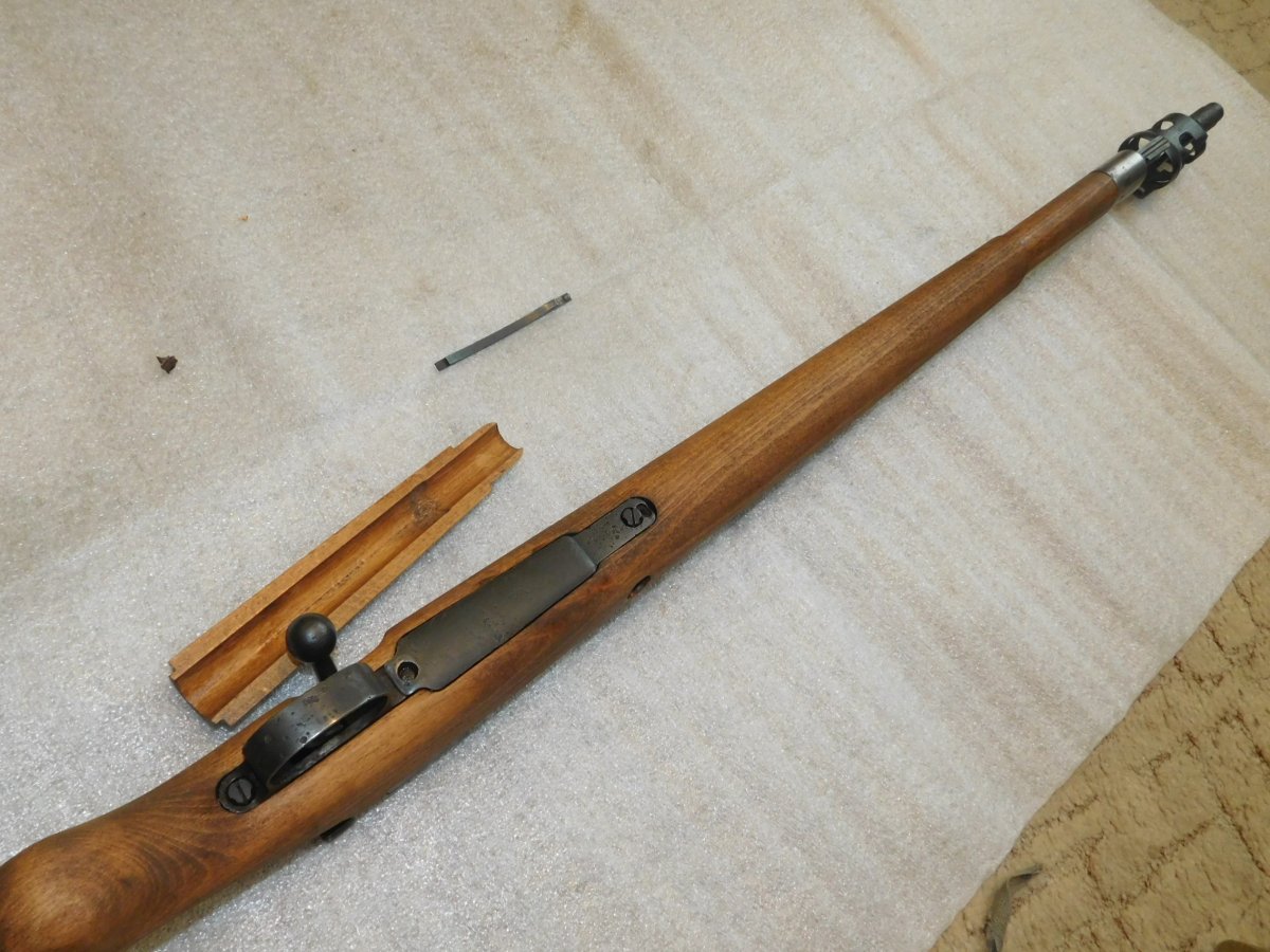 А отверстия под шомпол НЕТУ... Ну почему же мастера не сверлят эти отверстия??? Карабин то без шомпола - некомплектен!!! А глубокое отверстие "на коленках" сверлить плохо - сверло уходит в стороны, а не по центру... (Это не оффтоп, а маленькая заметка относительно этого ложа).