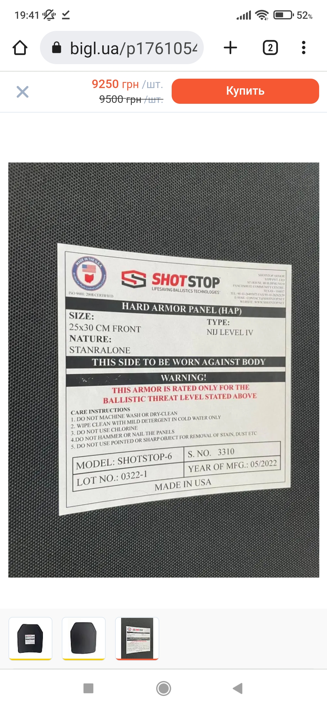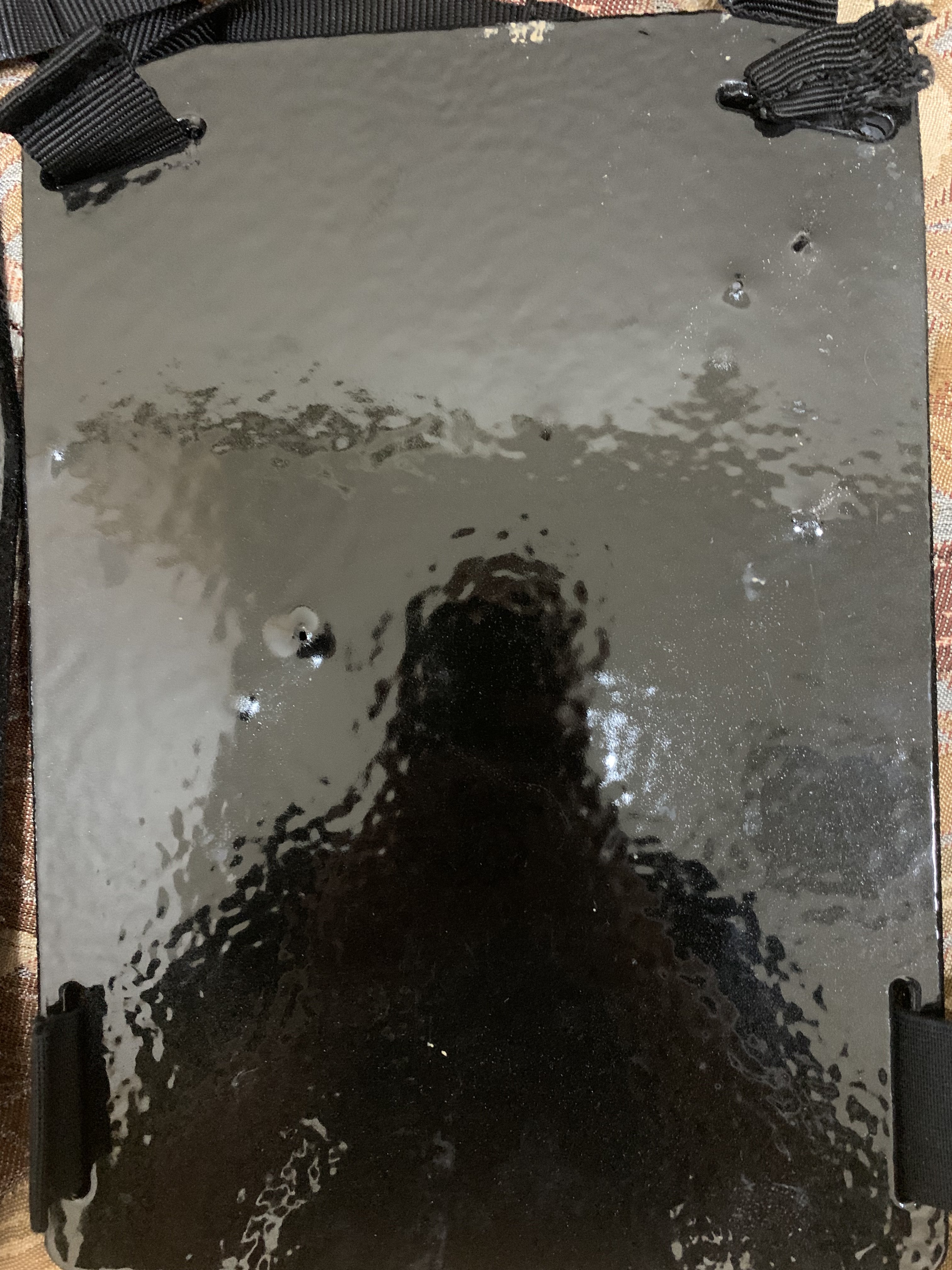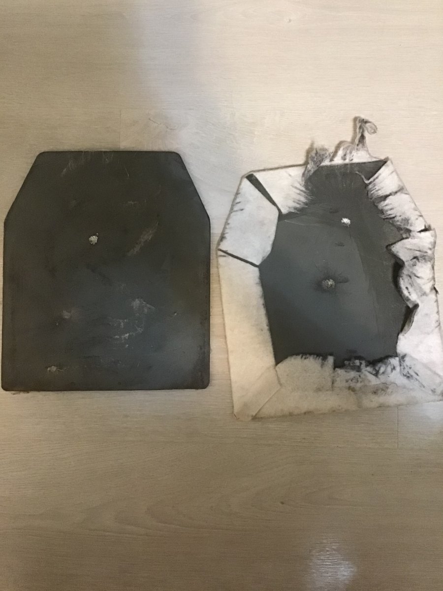 И снова всем привет . Сейчас активно помогаем нашим бойцам, а именно - отстреливаем бронеплиты и пытаемся разработать и модернизировать глушители ну и тд. В общем суть в следующем , попали к нам на отстрел очередные две плиты темп 3000. Размер 28/24 см толщина 5,5 мм вес одной плиты 2,75 кг . Отстреливали АКМ 7,62/39 ПС и АК74 5,45/39 ПП . Два попадания - две точки . Та , что посветлее на фото 5,45 ПП . Как по мне просто отличные плиты . Жаль конечно , что темп пожлобствовал на размерах, были бы чуть больше , были бы идеальные плиты . Но с учётом антирекошетного кевлара , считай получается стандартный размер плиты. Вроде читал , что использовали они армор 600. Как по мне на сегодняшний день - это самое лучшее соотношение веса , и качества . Но напоминаю, что были у нас и печальные варианты отсырела плит ТЕМП 3000. Так , что отстреливаем, отстреливаем и ещё раз отстреливаем !!! Ко всем с уважением. Все буде Україна !!!