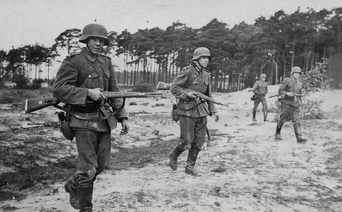 Ищем любой Рейберт или мануал периода ВМВ (Хеер) где рассматривают - пистолет, винтовку, пистолет-пулемет, ЛМГ, ШМГ итд...и познаем науку тоесть азы обращения с этим видом оружия - на плацу, в каруле, на марше, в бою, при стрельбе, на параде, в движении + добовляем исторические фото и кинохронику....и будет таки счастье...в бою часто как удобно но как учили во время ВМВ....