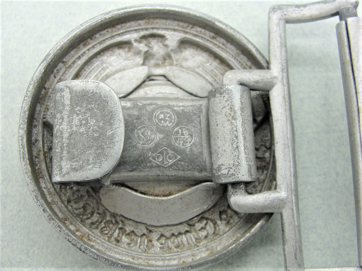 Спасибо за ответ. OLC 36/43 одна из самых редких и самых дорогих офицерских пряжек СС. С учетом периода и дефицита материалов, она изготовлялись и высококачественного цинка, а потом наносилось покрытие. Судя по тому что я вижу по аверсу пряги, это далеко не цинк. Кроме того, если сравнить ее с азбучными оригиналами, то вы найдете массу отличий. Но самое главное, на аверсе четко видны следы литья, отчетливо видно их по кавернам на перьях. Реверс смысла обсуждать не вижу. Лично мое мнение, это не оригинал, а застаренная копия. С уважением, Илья