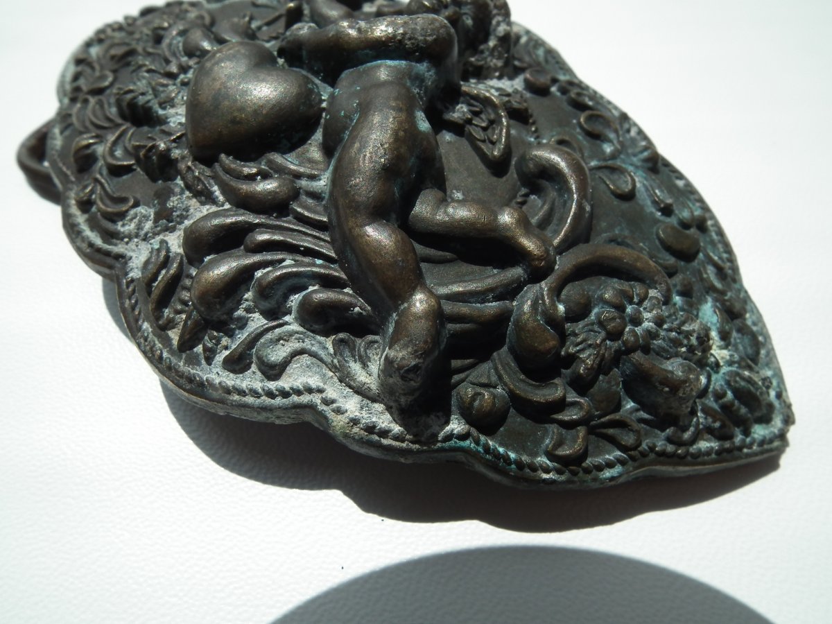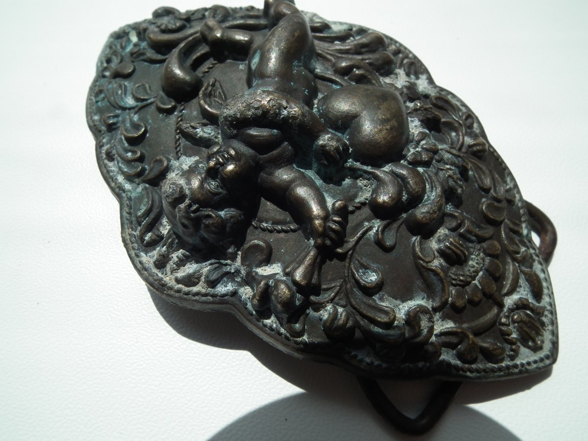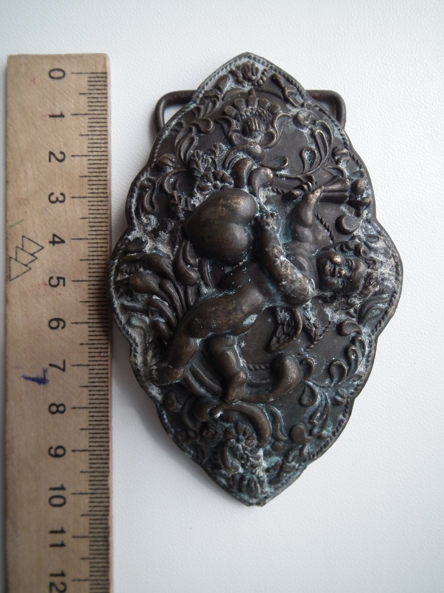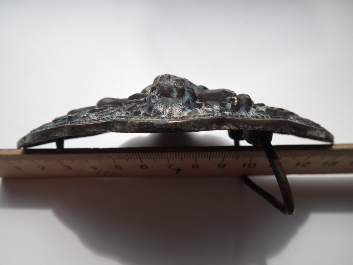 Должно быть второе отломанное крепление (следы),сужу по расположению рисунка,носилась горизонтально.Скорее всего-царизм,прошлый век-уж больно литьё точное.С ув.