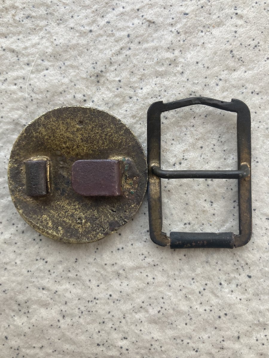 В дополнение темы…Находки с места подъема пряги.Покрытие пряжек идентичны.Материал пряжки медь.Что-то ещё непонятное в сопутке,может кто в курсе.Пряжка,как понял портупейная.