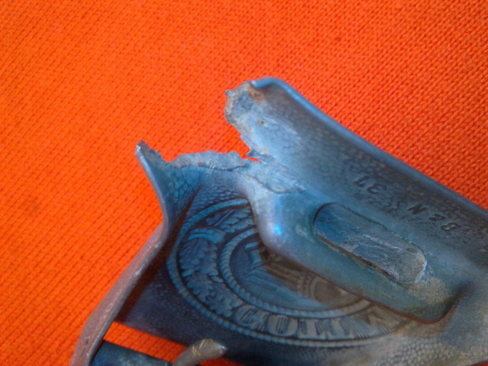 И я согласен с вьішесказанньім. Вьіровнять то можно, вставить недостающий кусочек, подпаять, подрезать штихелями подобие пузьірьков на поле пряги... Но будет НЕ ТО. Послушайте товарищей, оставьте так.