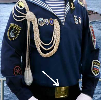 Нету у меня "уставной". Потому как наши морячки юзают прежнюю СССРовскую. Прилагаю фото "дембельской" фланки с такой прягой.