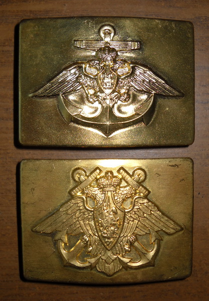Купил я их по 60 гривен,это где-то по 240 рублей получается.А у вас ,Комиссар,по чём они?Если нетрудно поставьте фото уставной пряги ВМФ РФ или она такая же как при СССР?Когда я их брал мне сказали что верхняя для морской охраны погранвойск,а нижняя для всех остальных матросов ВМФ:D