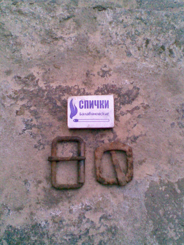 Нашел такие пряжки...Та, которая больше, была в одной яме с железным кольцом(диаметр ~ 3см), кольцо не фоткал. От чего они могут быть?