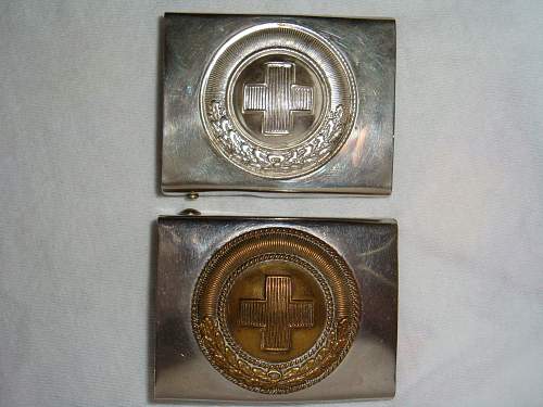 Ну, залежить як шукати Імхо, по фото видно, що Freiwilligen Krankenpflege (якщо Ви їх мали на увазі) носили пряжки Німецького Червоного хреста (DRK), їх носили і у Веймарі після ПСВ. Типу таких (крайня - офіцерська):