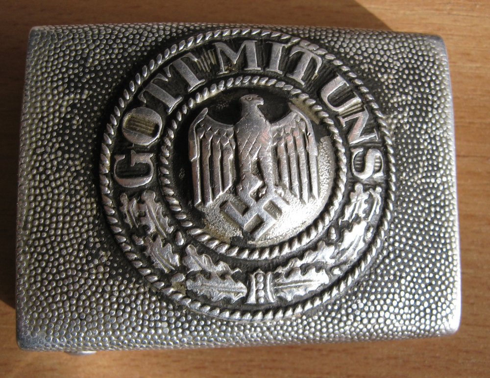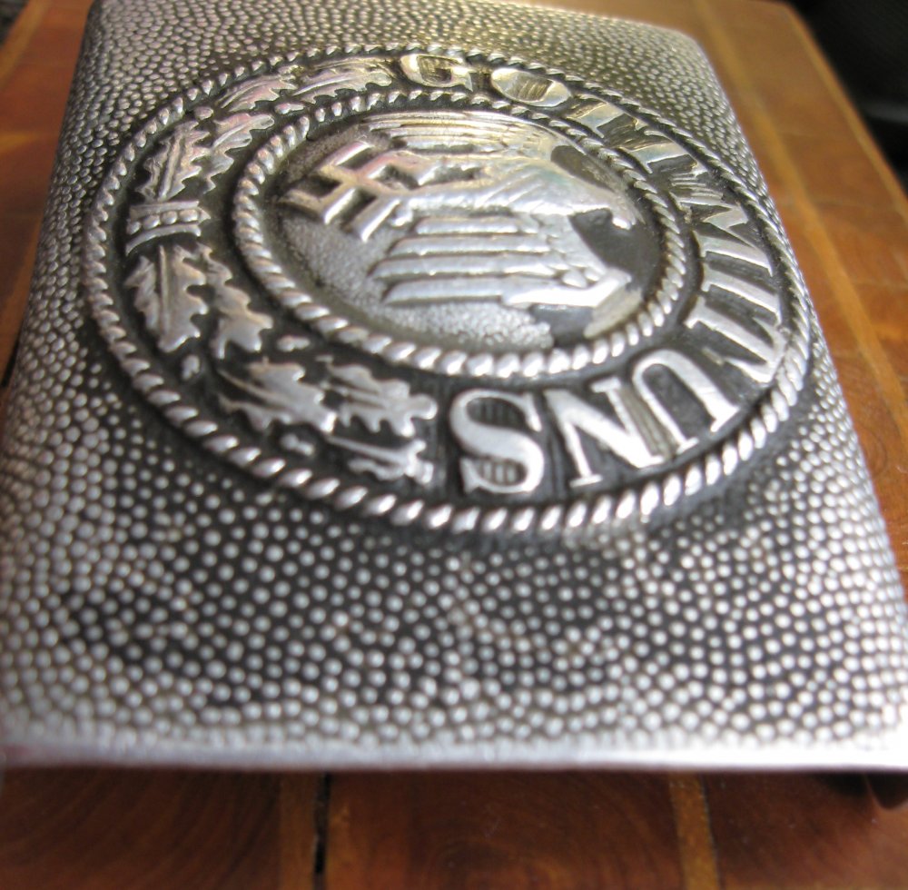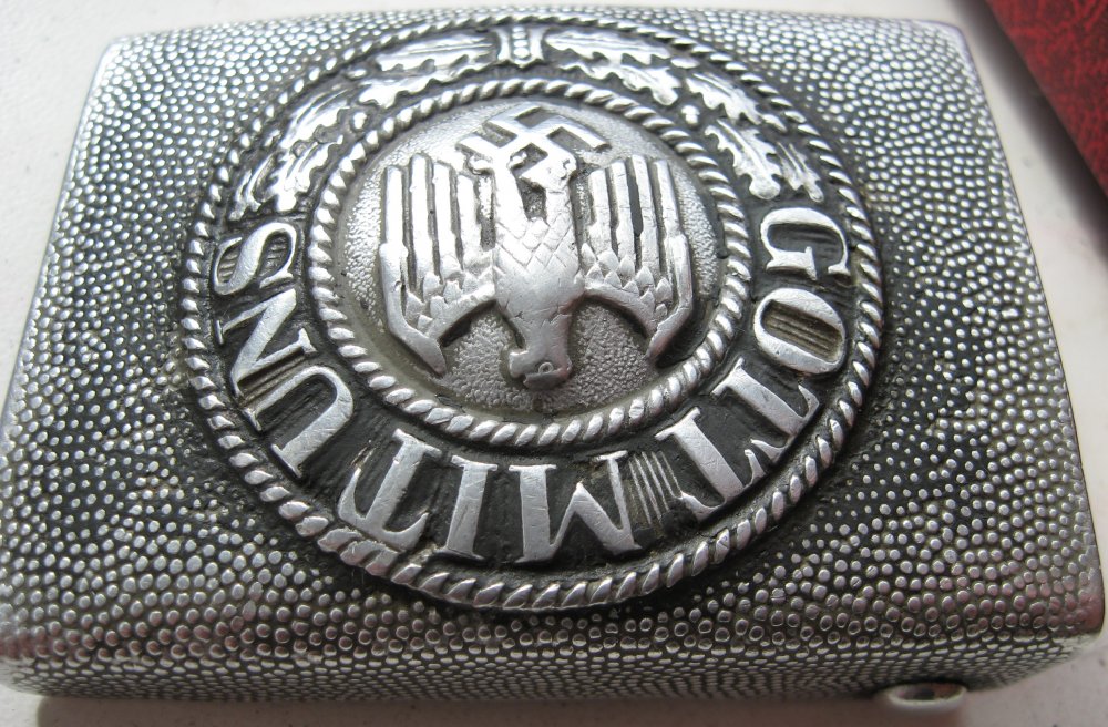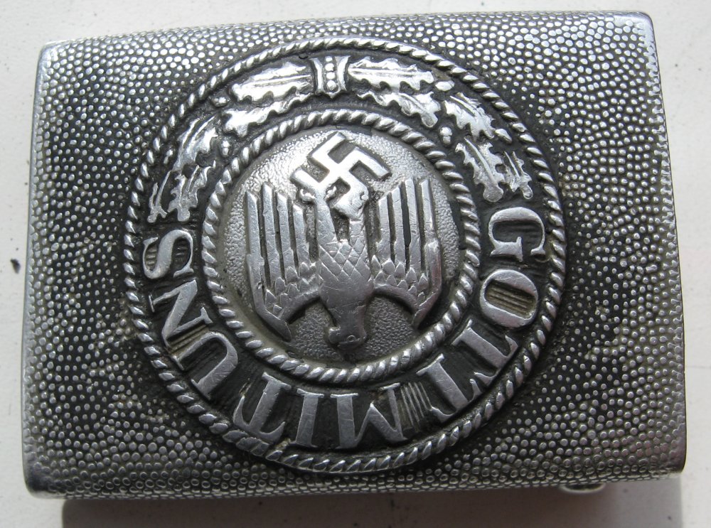 Попробовал смыть черную краску вокруг орла и с обратной стороны пряжки, под черной-остатки зеленой а на обратке проявилась надпись или маркировка.