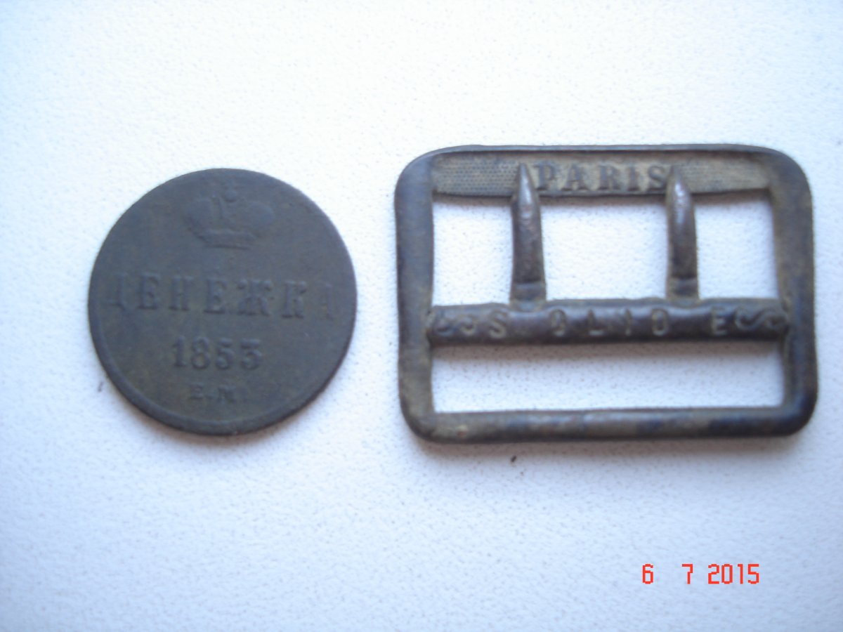 Подскажите, от чего может быть эта пряжка? найдена с монетой в одной ямке, и этих она годов, как монета?